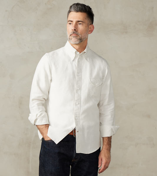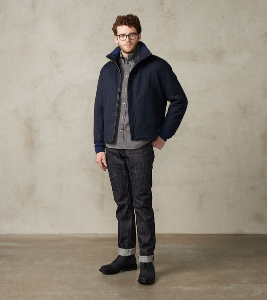 Starting at footwear first per usual, and to cement the Viberg connection, we allocated our exclusive Shelby Sharp for a Shinki Natural Oiled Horsebutt version from Japan’s best in this specialty hide discipline, with a period-appropriate natural leather 360 storm welt and stacked leather sole. As suit separates, we worked on a redefined Hunt Work Jacket inspired by industrial-era Sack Jacket tailoring popularized during the 1920’s, and English Convertible pleated trousers that were designed to be worn with a belt, suspenders, or neither for various duties and conditions. Sourcing fabric from the historic mills in the UK, these pieces are derived from the old country for the new age with a Marling & Evans undyed completely natural wool development in the true shear color, and a heavy duty and wale Brisbane Moss Corduroy. Moving into military inspired outerwear from France and western Europe, we designed an F-2 Fatigue Jacket produced in the famous bullet and tear proof Covert Cloth from Lovat Mills in an anatomical design that will mold to the body of any commanding wearer. In the most extensive piece of the collection, the French Naval Flight Coat is a 3-in-1 masterpiece that combines elements from leather flight jackets, naval peacoats, and military motor patrol pieces. In Scotland’s venerable Halley Stevenson Dry Waxed Military Canvas for the shell portion, and a duck down liner in Japan’s renowned Shibaya Mills Salt Shrunk Rip-stop Nylon, this piece is an all-season high-ranking officer of design and craftsmanship that exemplifies the MOTIV ethos. All of these pieces as assembled, convey that this project honors the traditional tenets of heritage while simultaneously evolving it.