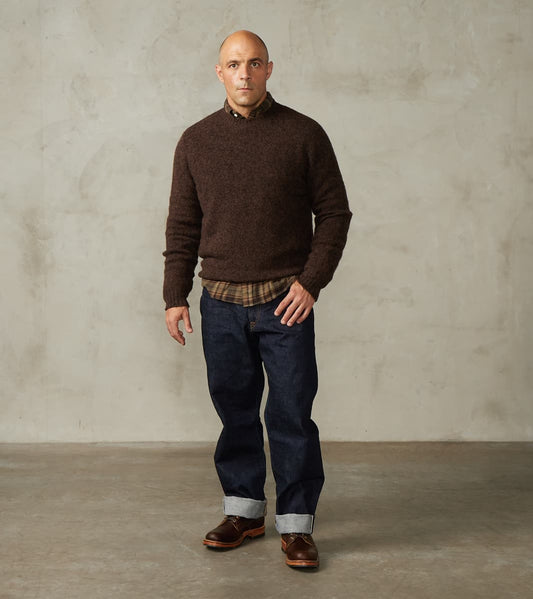 Italian Brushed Wool Shaggy Sheep Crewneck Jumper - Heathered Bark Brown