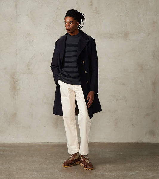 English Cotton Moleskin Marcel Lassance Redingote Coat - Navy
