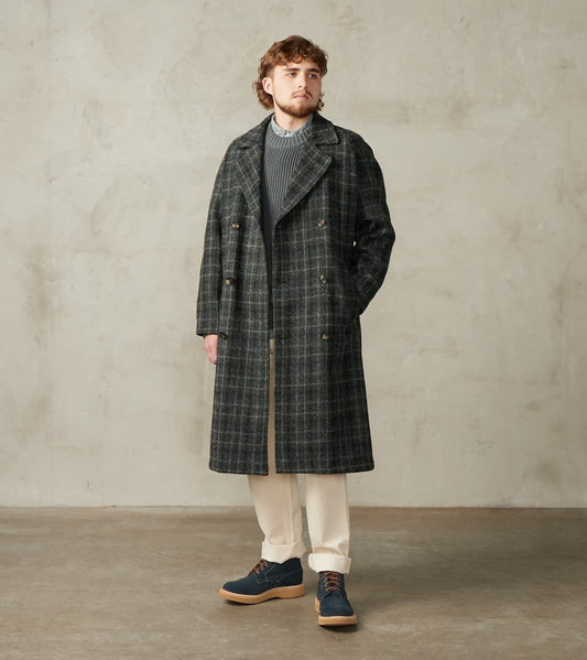 Harris Tweed Grandad Trench Coat - Grey Windowpane Check