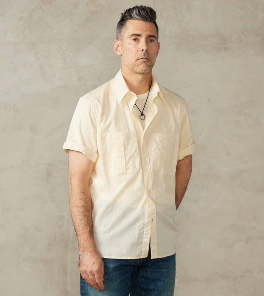 English Washed Cotton Voile Painter's Short Sleeve Shirt - Cream