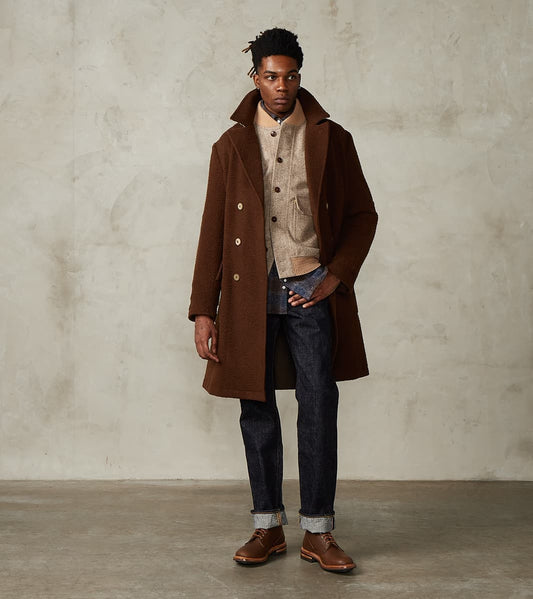 Italian Wool Ratine Cloth Marcel Lassance Redingote Coat - Coffee Brown