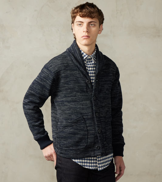 Shawl Cardigan - Dark Navy & Charcoal Melange