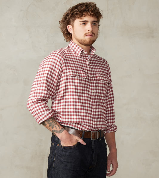 Arbeitshemd Work Shirt - Burgundy & Seashell Gingham Flannel