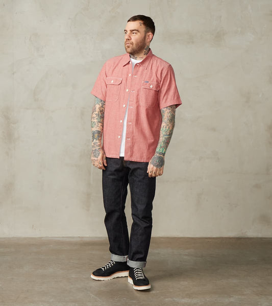 388-RED - Short Sleeved Summer Shirt - 4oz Japanese Selvedge Blend Red