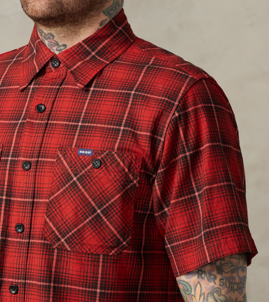 392-RED - Short Sleeved Work Shirt - 5oz Selvedge Red Vintage Check
