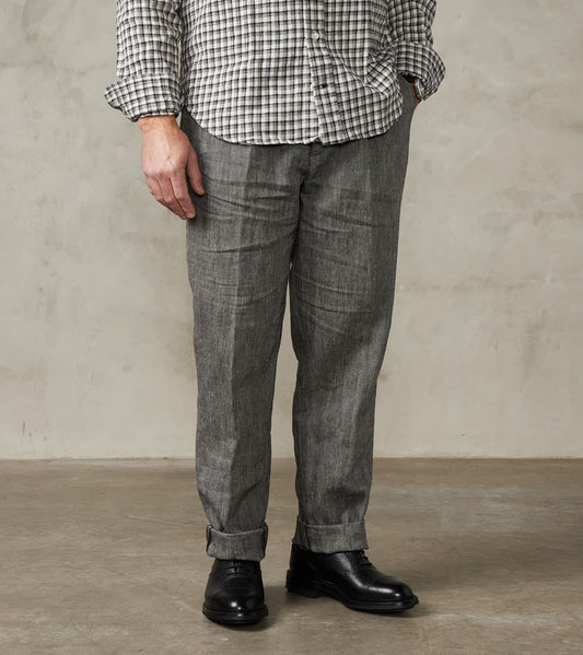 Enfield 055 Trouser - Pleated Tapered - Grey Cotton Linen Herringbone Twill