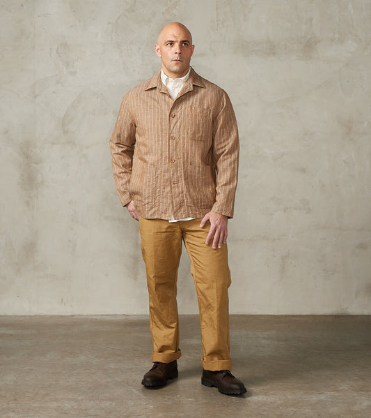 Creek 2001 Work Jacket - Beige Cotton Linen Stripe Twill