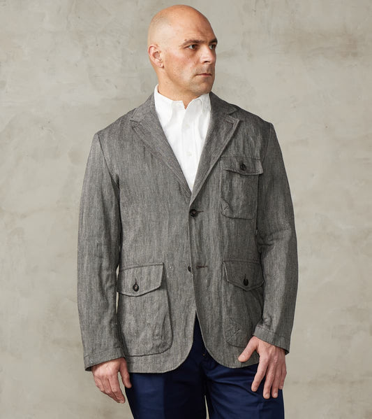 Chester 055 Field Blazer - Grey Cotton Linen Herringbone Twill