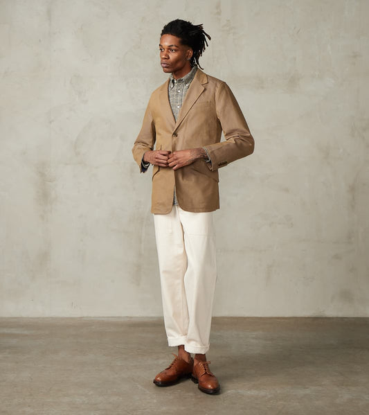 Single Breasted 2-Button Jacket - Cotton Recycled Polyester Twill - Khaki