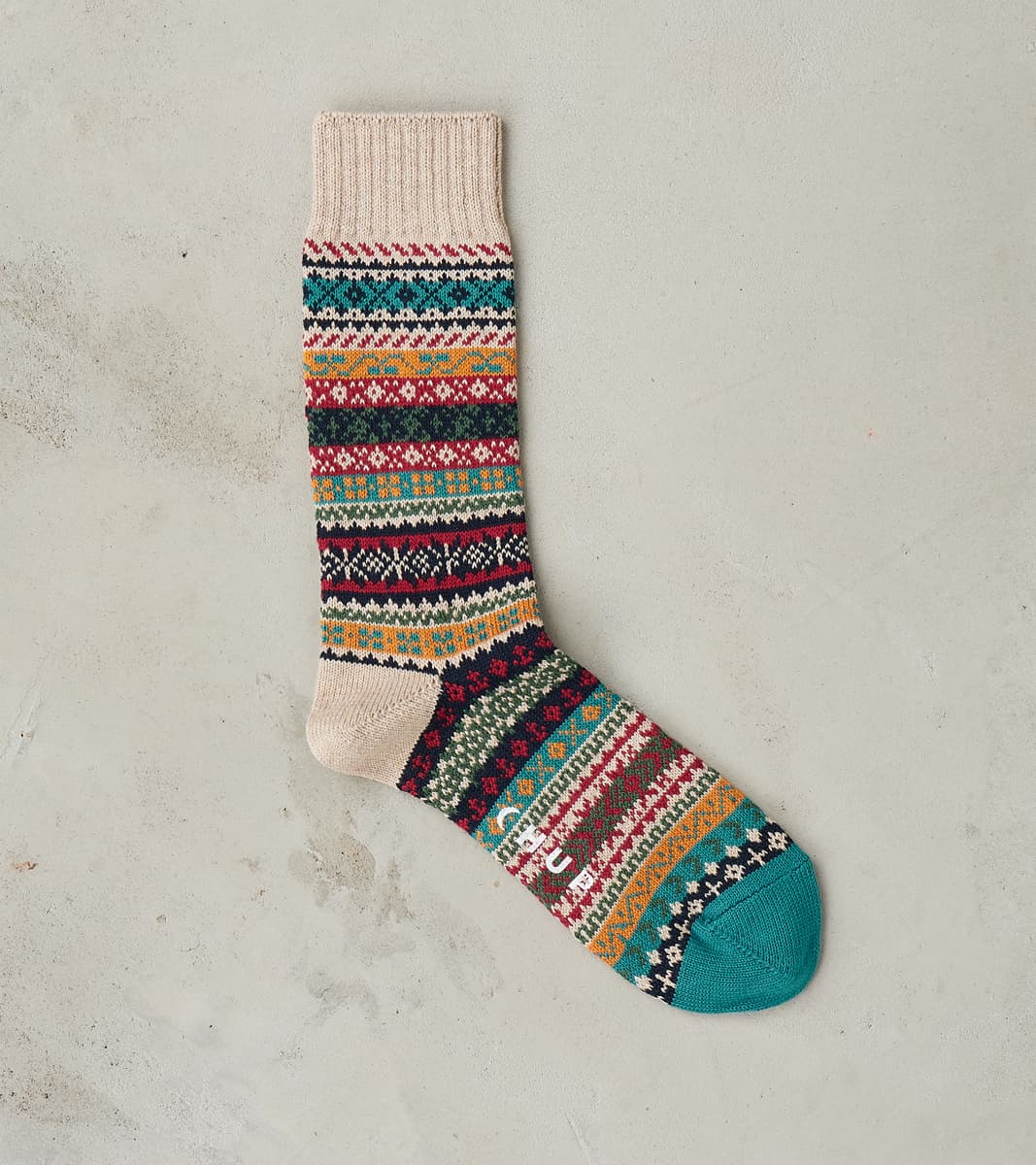 Begun in Tokyo with one desk and a single telephone over 25 years ago, Glen Clyde Inc. worked to become expert sock manufacturers by ensuring the utmost quality in production with unique designs. They created CHUP, "Classical Human's Universal Peace," to allow for the production of exceptionally designed folkloric and indigenous-inspired pieces that incorporate patterns and motifs from global cultures. The process of making socks by utilizing a stocking frame machine and a rare hand linking machine keeps the production old world and limited. Implementing...