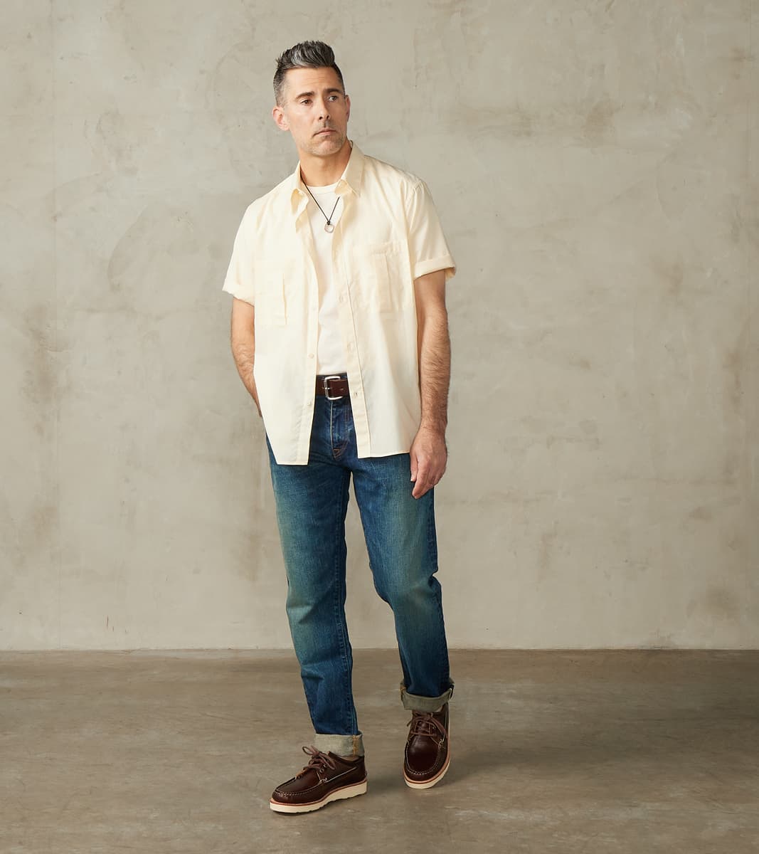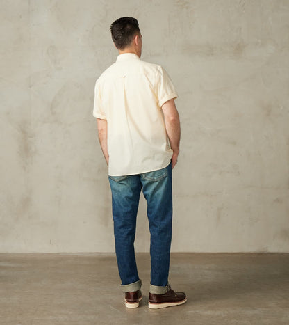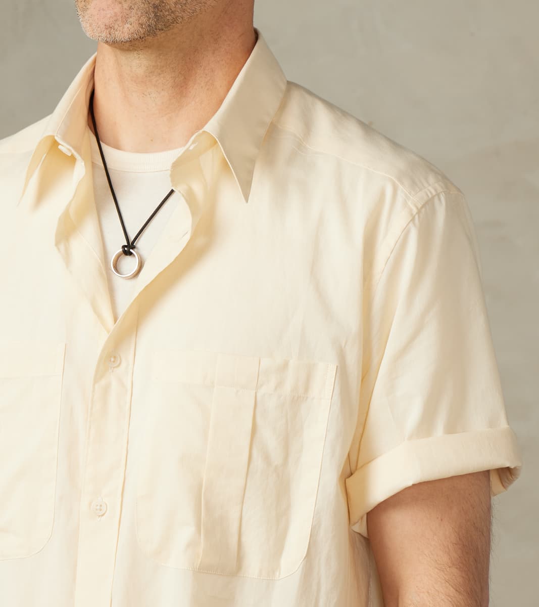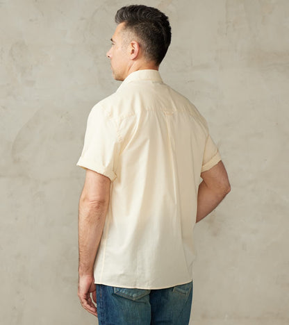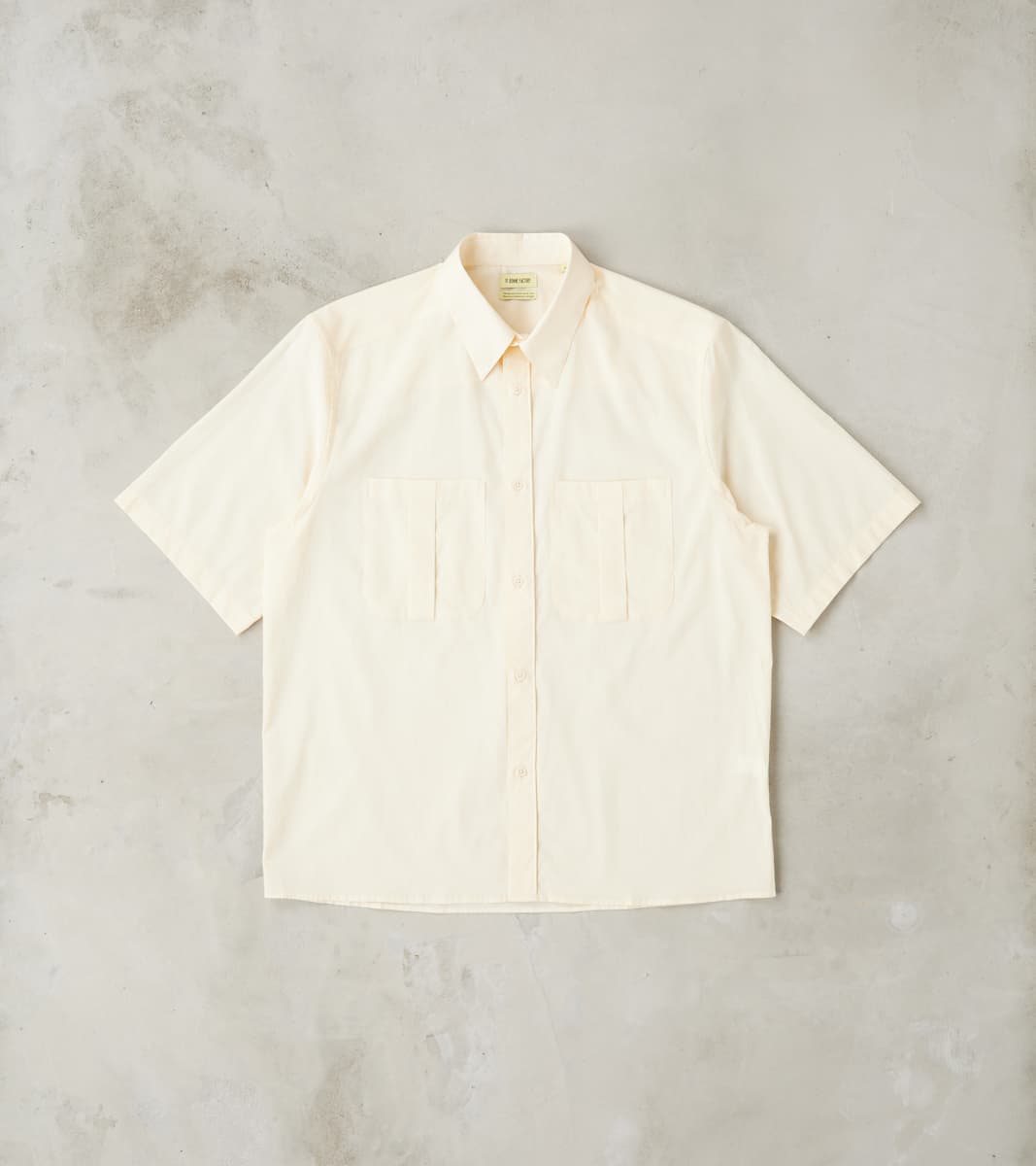 English Washed Cotton Voile Painter's Short Sleeve Shirt - Cream