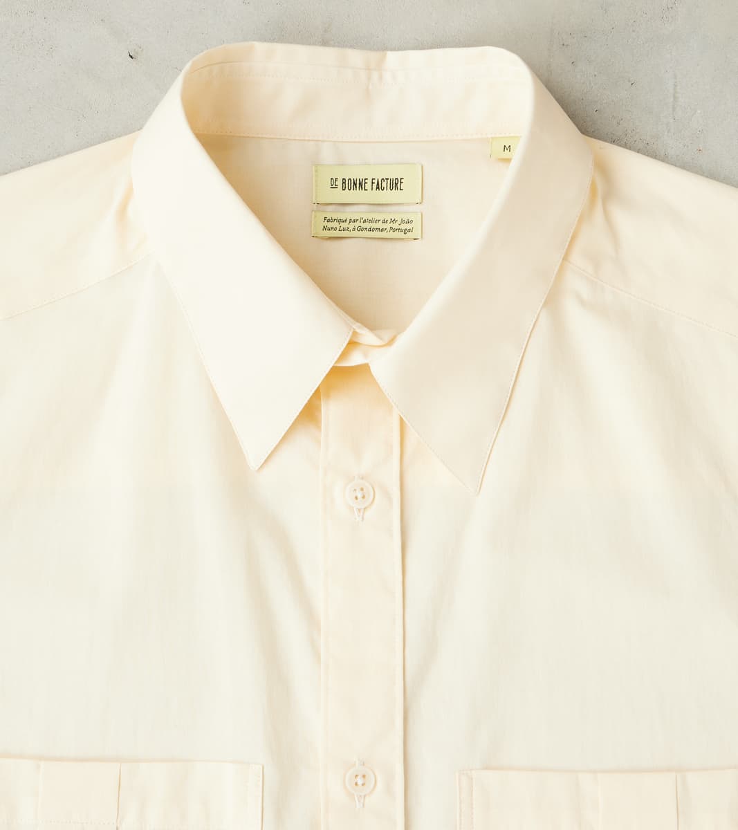 De Bonne Facture English Washed Cotton Voile Painter's Short Sleeve Shirt - Cream