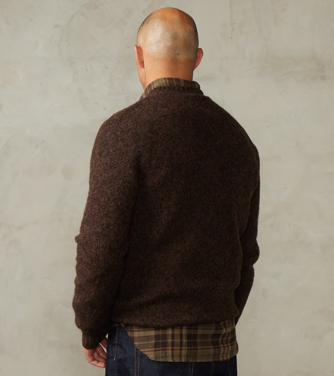De Bonne Facture Italian Brushed Wool Shaggy Sheep Crewneck Jumper - Heathered Bark Brown