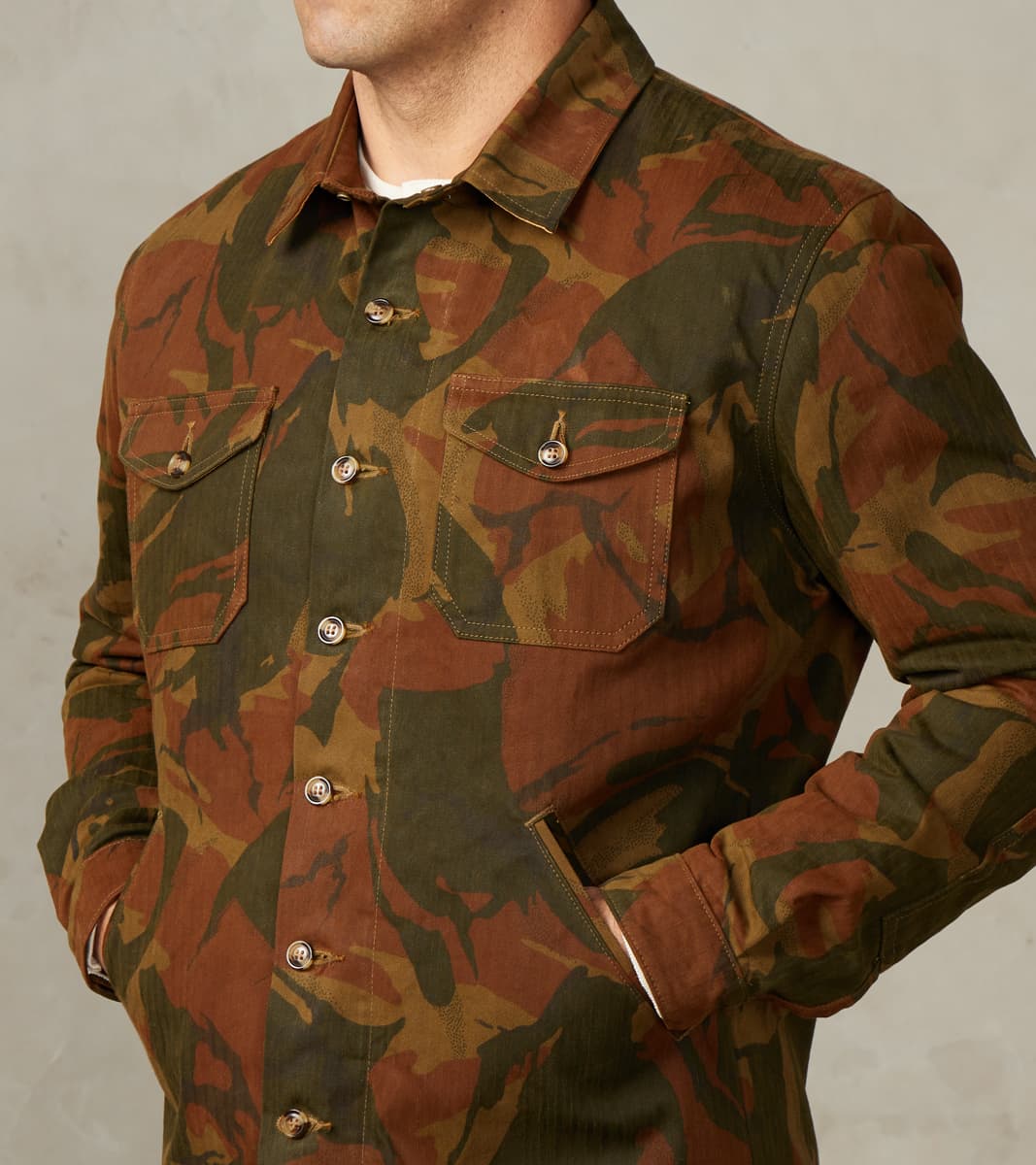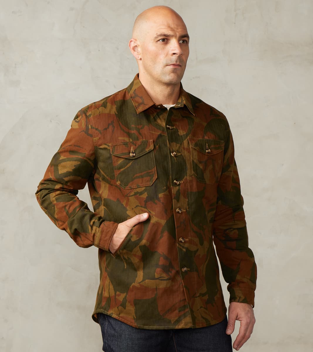 Dehen 1920 Crissman Overshirt - 14oz H.Stevensons® Dry Waxed Herringbone - Ginger Camo