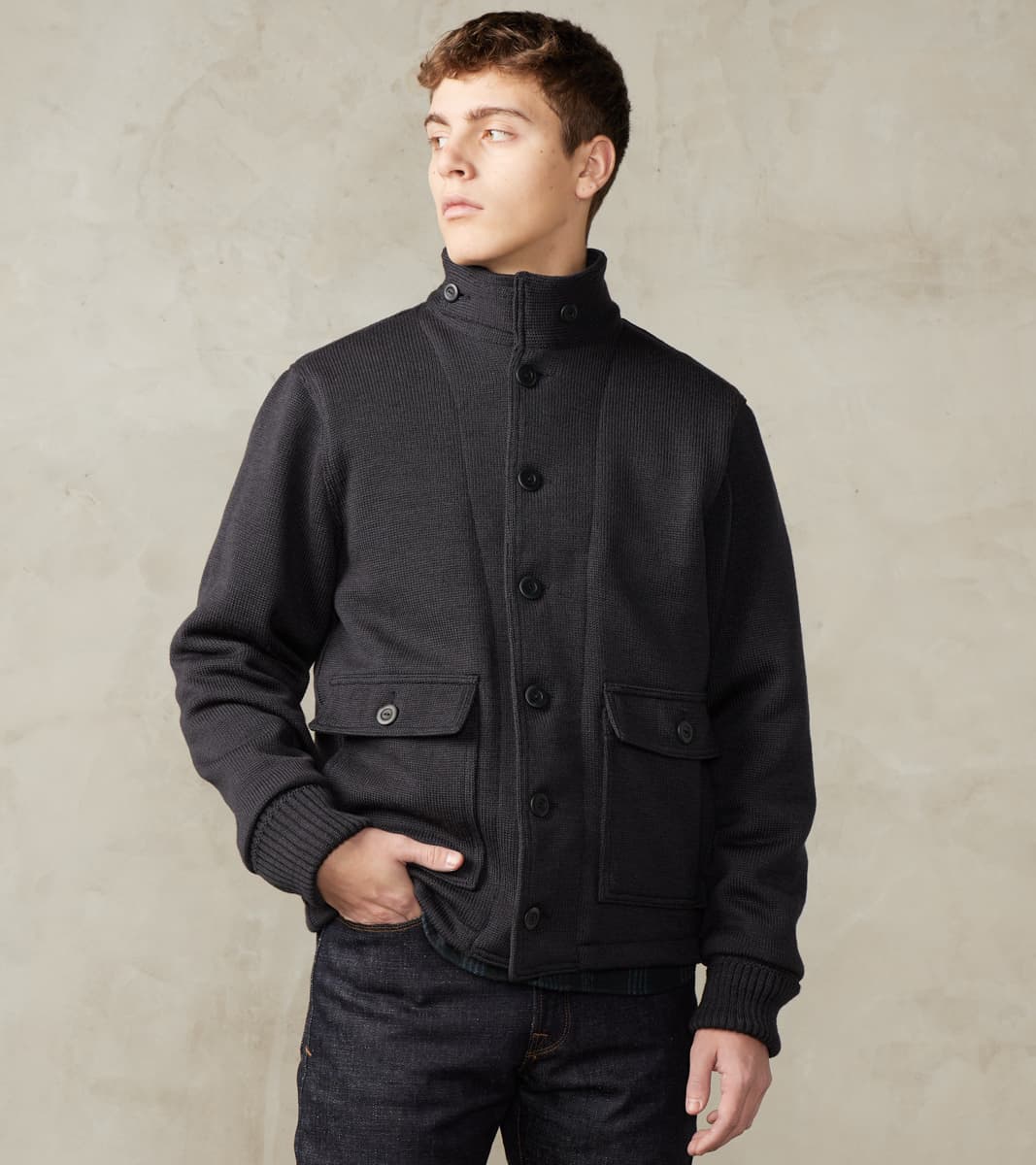 Dehen 1920 Submariner Lined Knit Jacket - Dark Charcoal
