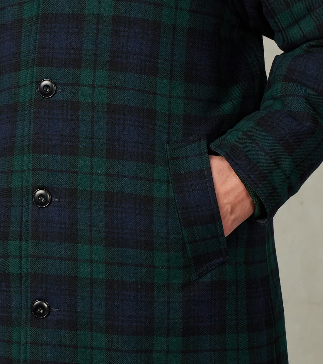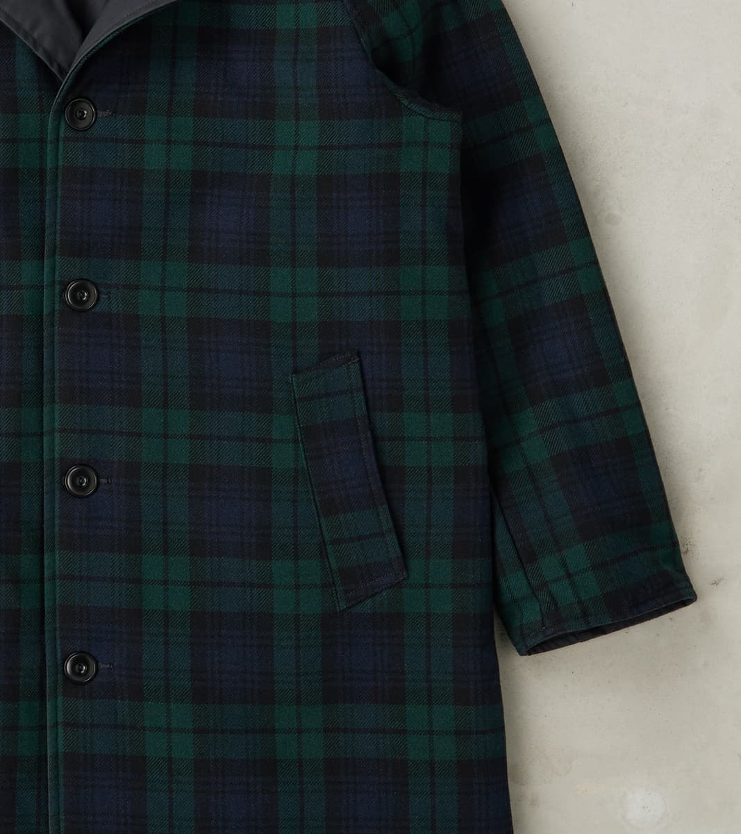 East Harbour Surplus Murray 670 Reversible Raglan Trench Coat - Black Waterproof Canvas & Blackwatch Woolen