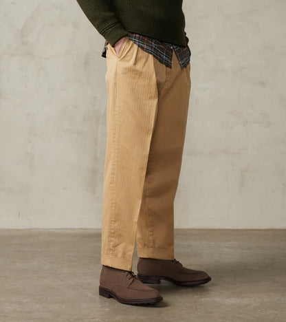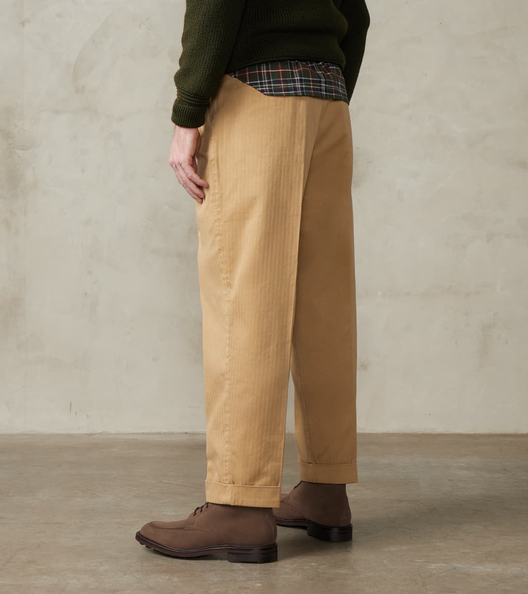 Fortela Seattle Pleated Trouser - Camel Herringbone Twill