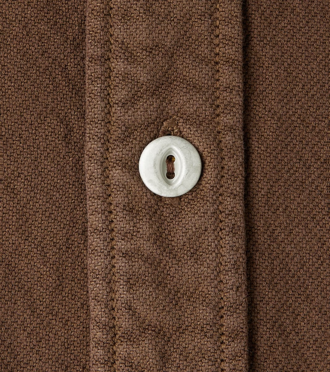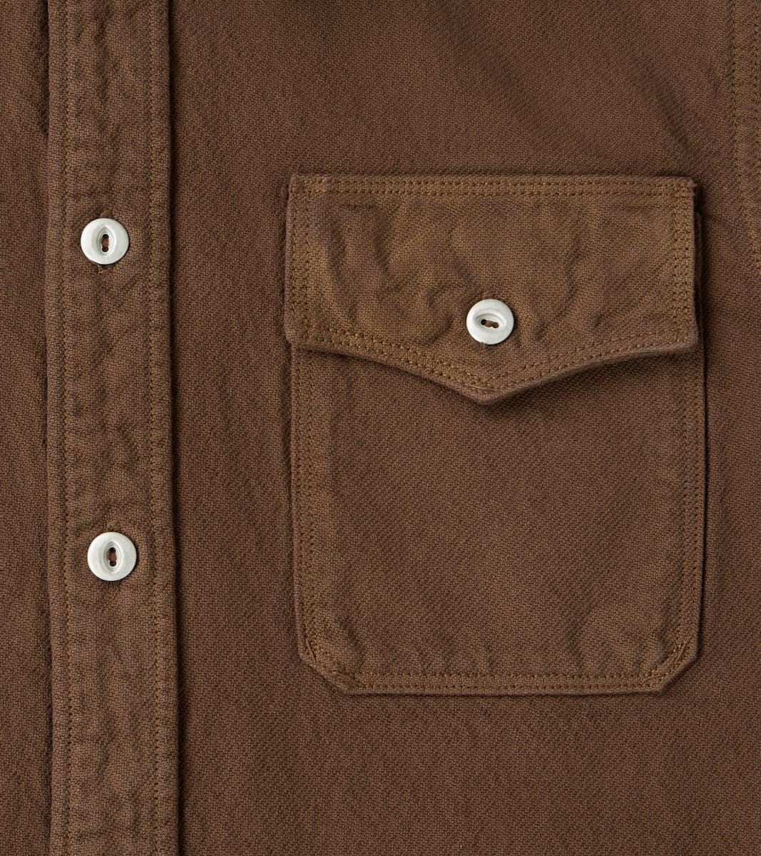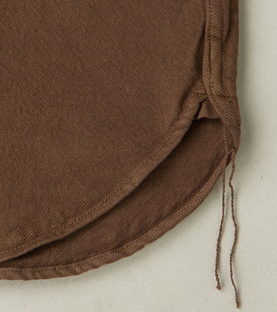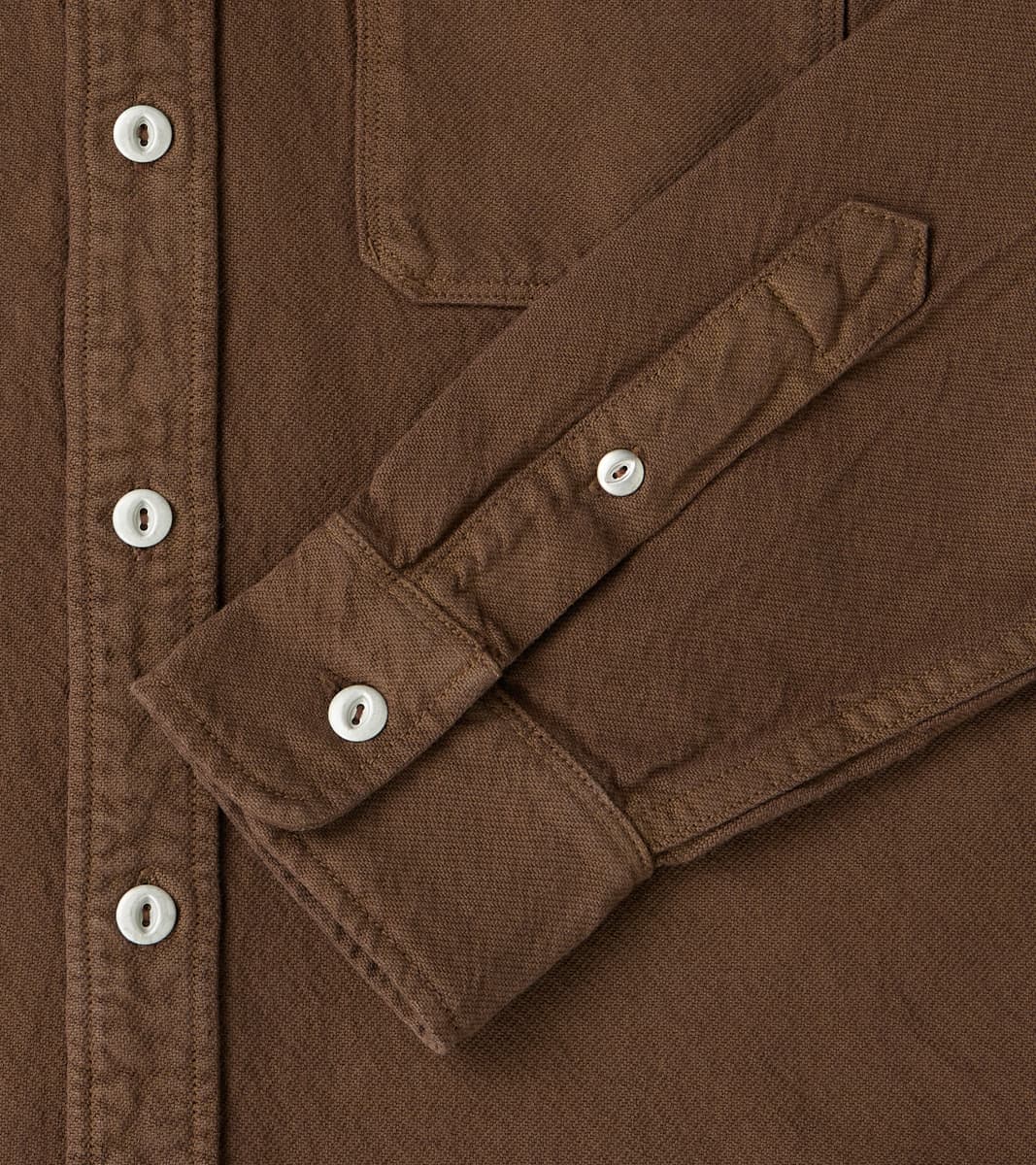 The Freenote Cloth Scout USA Twill Shirt in Cedar is a medium-weight piece produced from a US milled cloth using 100% US Grown Cotton for an overshirt or casual button down appropriate as an all-season style staple. Using the Scout Shirt pattern, this piece is perfectly proportioned and made to be worn untucked for vintage-styled flavor, hallmarking utility and field shirts worn in the outdoors for generations. This USA Twill is piece-dyed to a saturated cedar brown and heavily garment-washed for a softened, worn-in feel that will only improve with age. Staying true to heritage production details and evolved design elements, this shirt features a point collar, buttoned throat latch, curved back yoke panel, buttoned patch chest pockets with curved flaps, and pleated button cuffs. It is completed with Japanese metal fisheye buttons, felled seams, bartack reinforcements, and chainstitched construction throughout with inseam run-off. The Freenote Cloth Scout Twill Shirt is a modern take on Western workwear made in the United States with old-world quality — sure to become a future heirloom for the vintage-inspired enthusiast seeking something new.