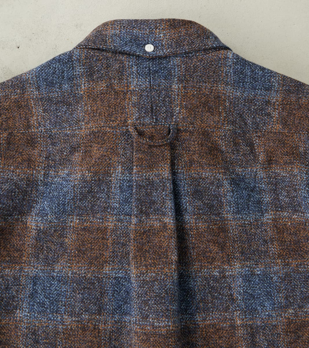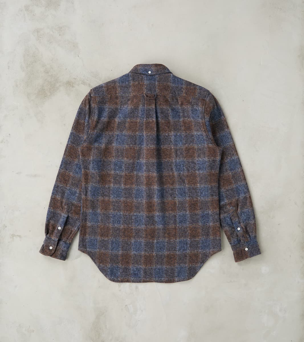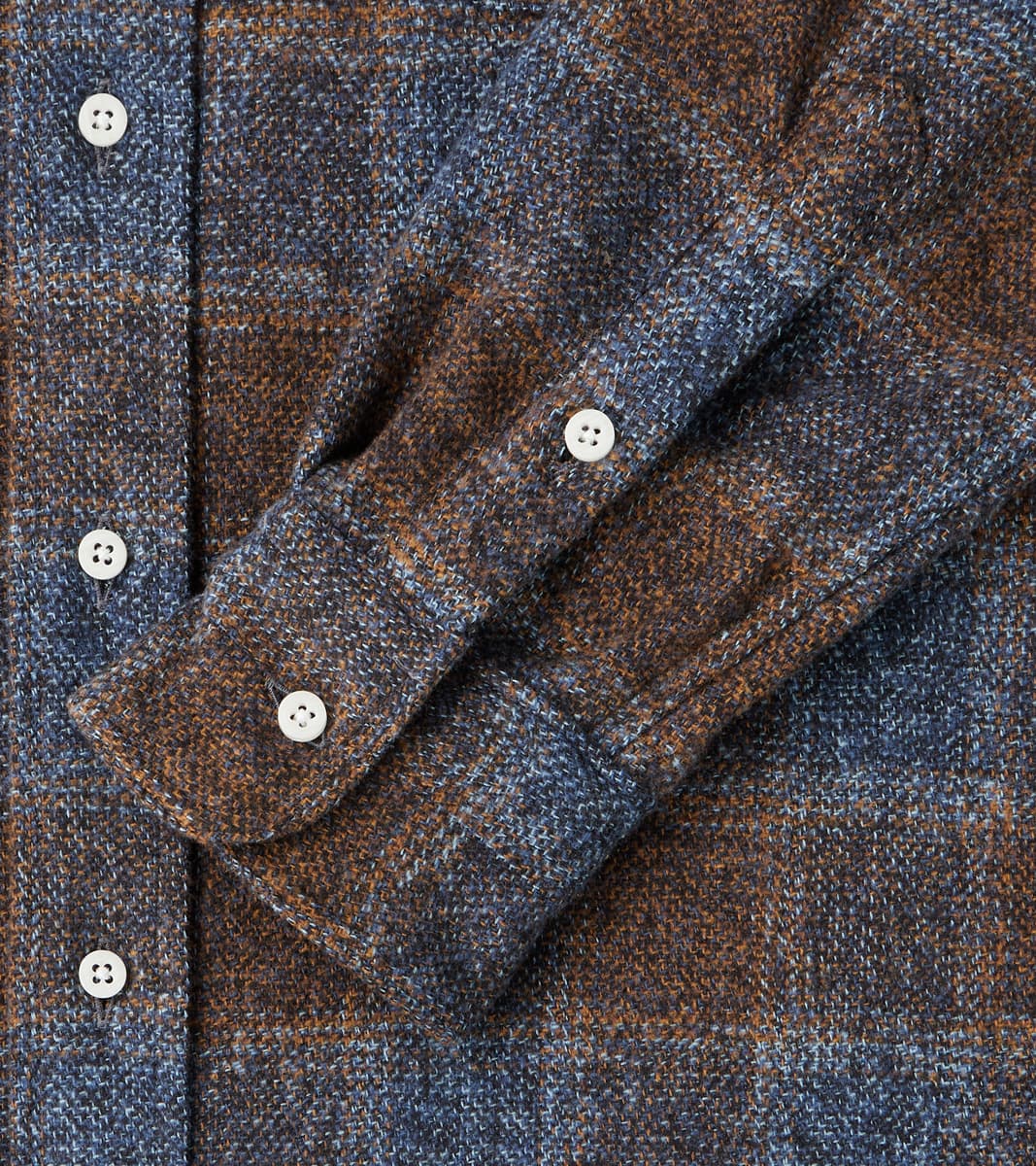 The Japanese Cotton Tweed in Brown from Gitman Vintage is made in a three-season 7.5 oz. heavyweight fabric loomed to have the pattern texture of tweed in a complex English-inspired check using yarn-dyed shades of brown and blue. This fabric is produced in Japan from 100% Combed Cotton 2-ply twisted Grandrelle yarns in various colors, creating a natural, irregular pattern. It is subtly brushed to achieve a luxurious, soft, and flexible hand in a hearty woven material. It features Gitman's original details, including the signature button-down collar, chest pocket, chalk buttons, a locker loop, and a final horizontal buttonhole in green thread. This shirt is produced in the modern tailored fit with a moderate hem sweep that styles well tucked or untucked, and an adapted straight cut "just right" for most body types. Gitman Vintage shirts are classic, simple, and original, with a casual sophistication that makes them a standard wardrobe piece for many well-dressed men.