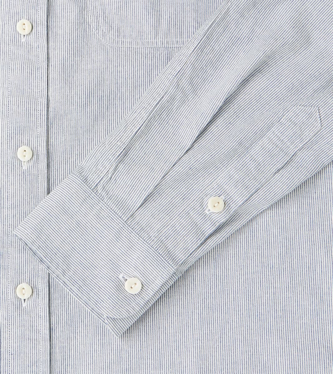 - 4.5 oz. Brushed Indigo Dyed Stripe Chambray