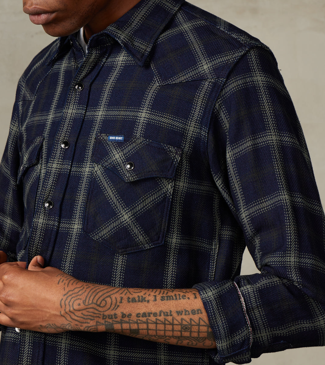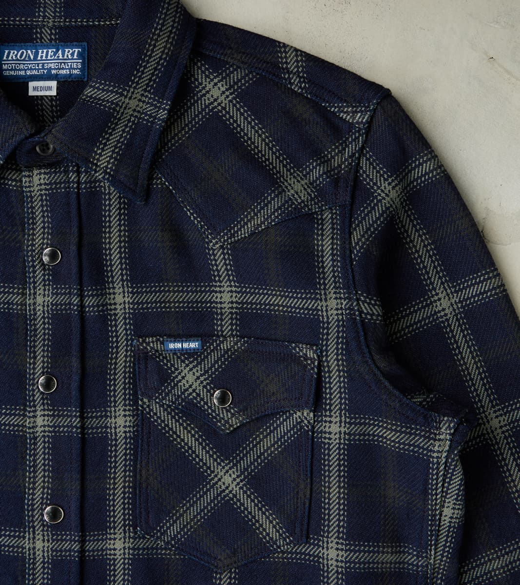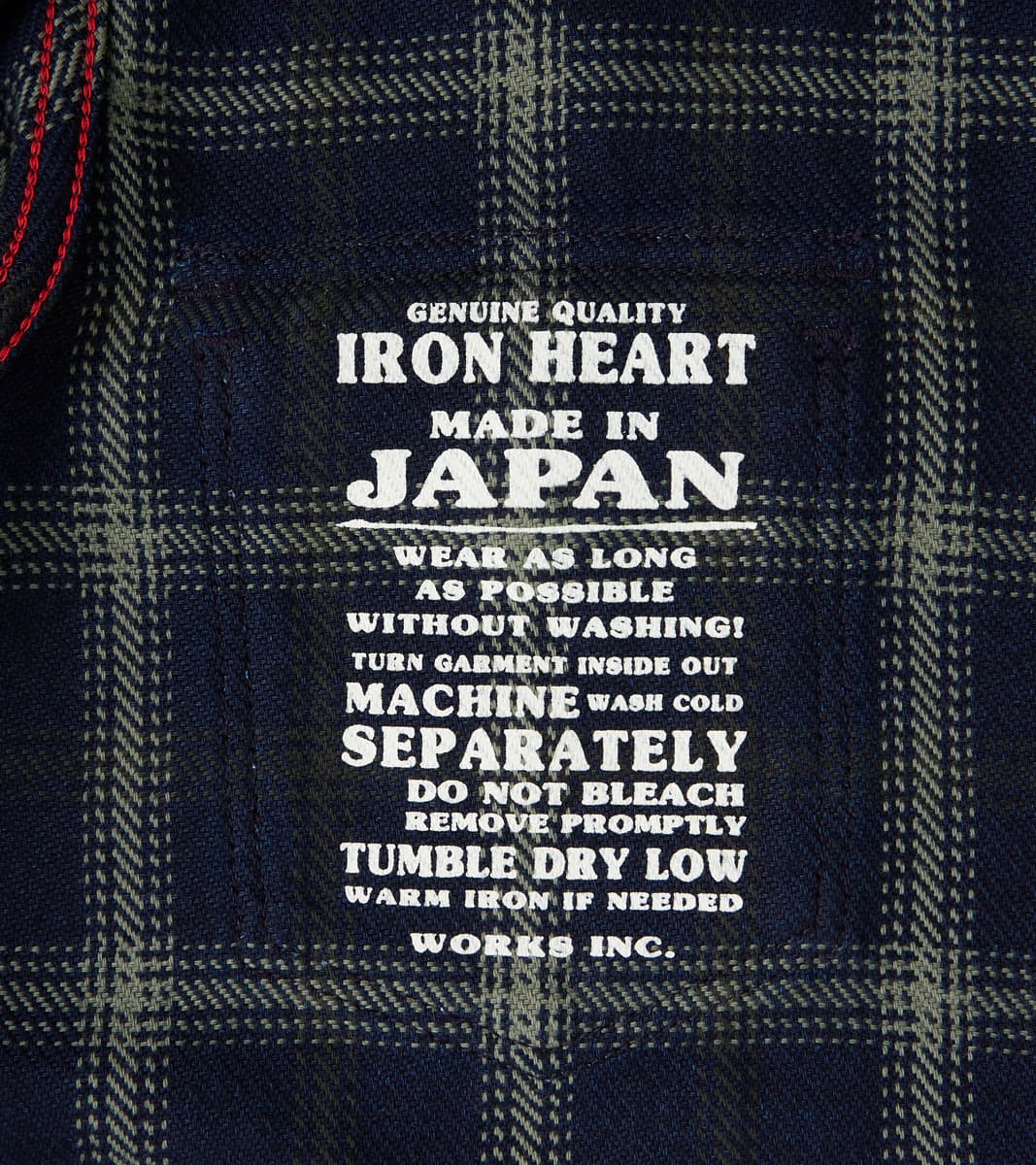 Our Method of measuring is different than Iron Heart’s, and we recommend consulting our Sizing Guide when purchasing. We provide garment-specific measurements taken in-house, per Our Method, that are not duplicated across fabric or colorways and are re-measured each production run. Please feel free to Contact Us for additional assistance.