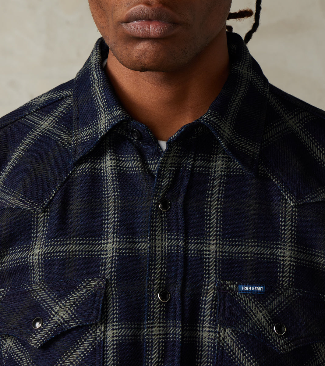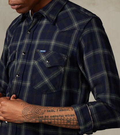 Iron Heart 411-BLK - Western - 9oz Selvedge Flannel Indigo Black Check