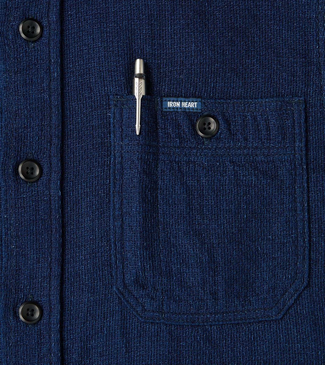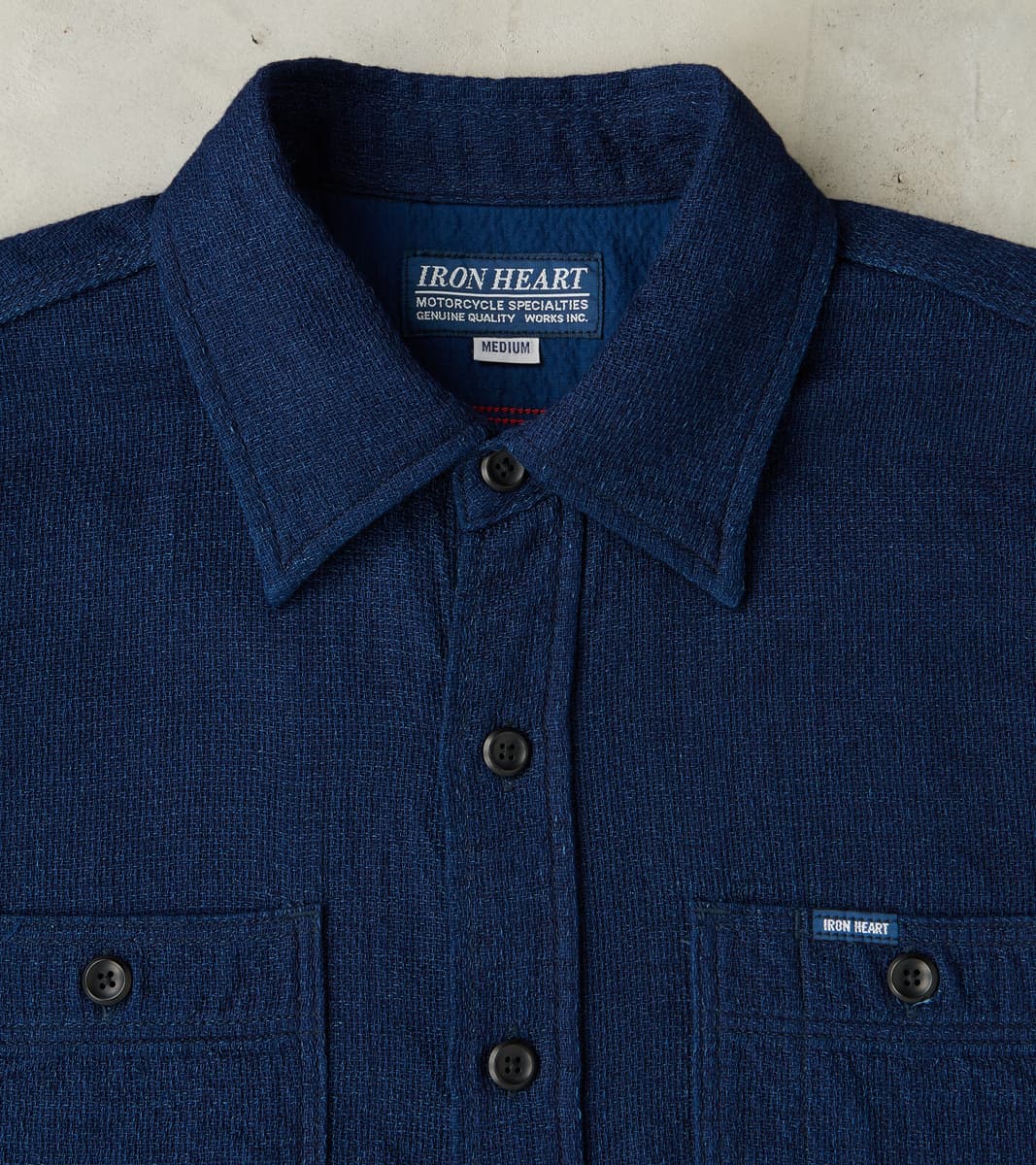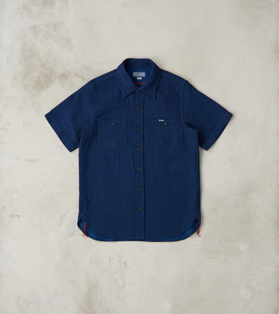 Iron Heart 417-IND - Short Sleeved Work Shirt - 5oz Double Gauze Indigo Cloth