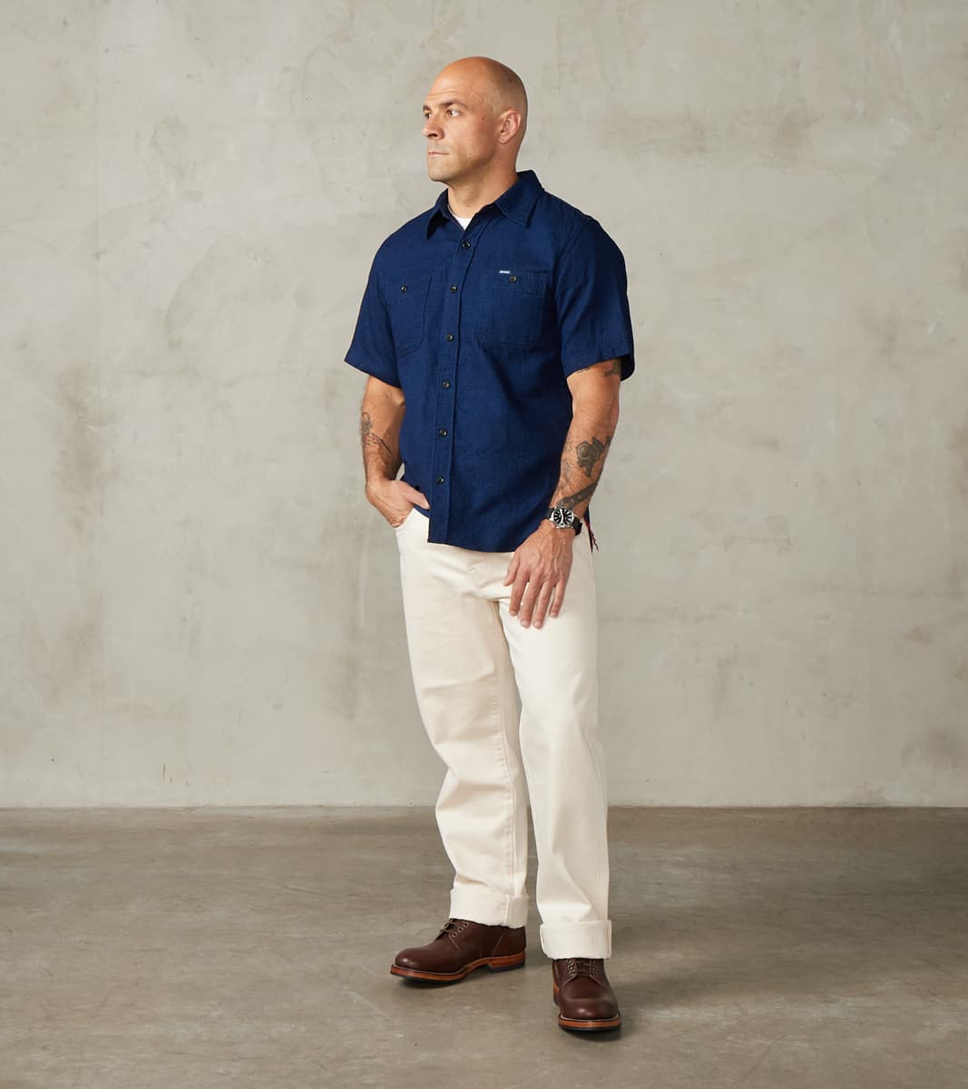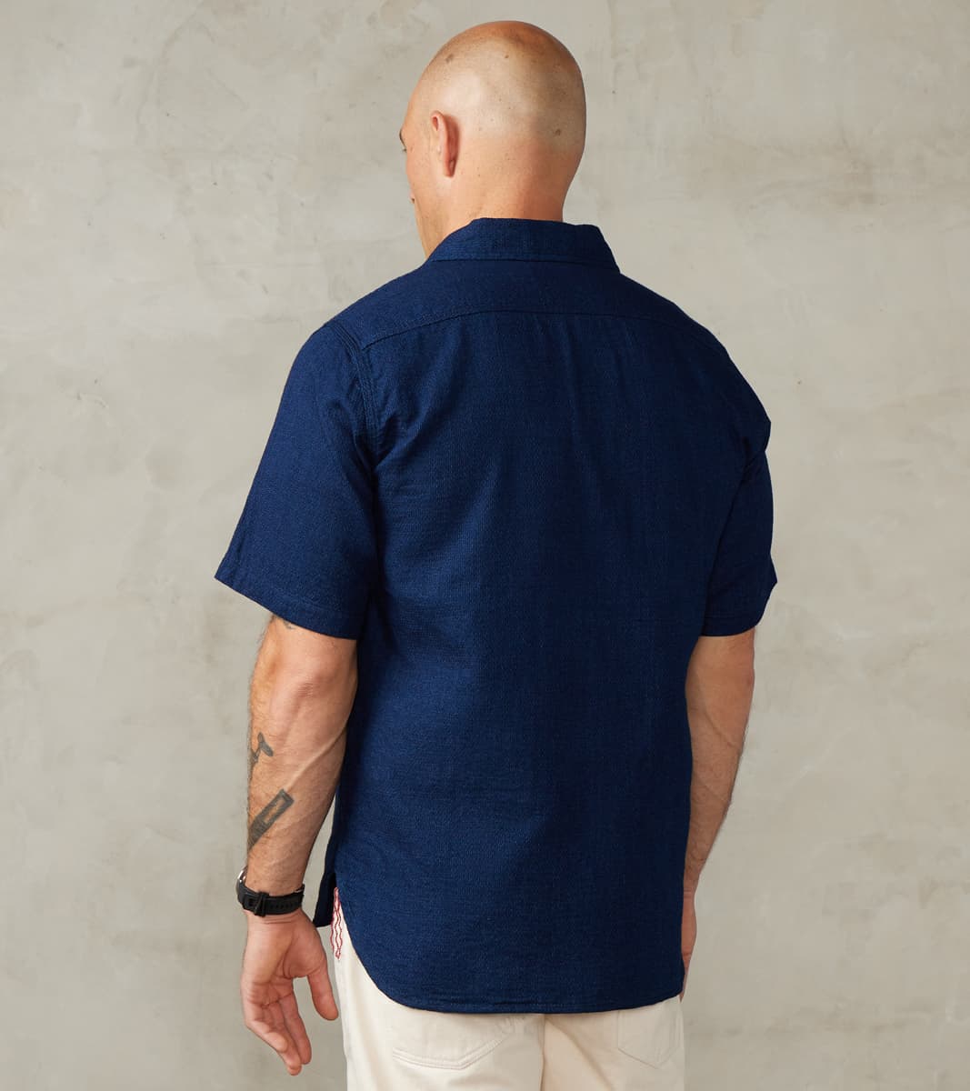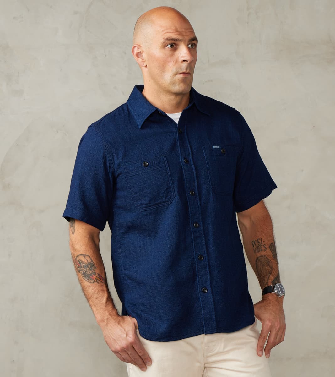 417-IND - Short Sleeved Work Shirt - 5oz Double Gauze Indigo Cloth