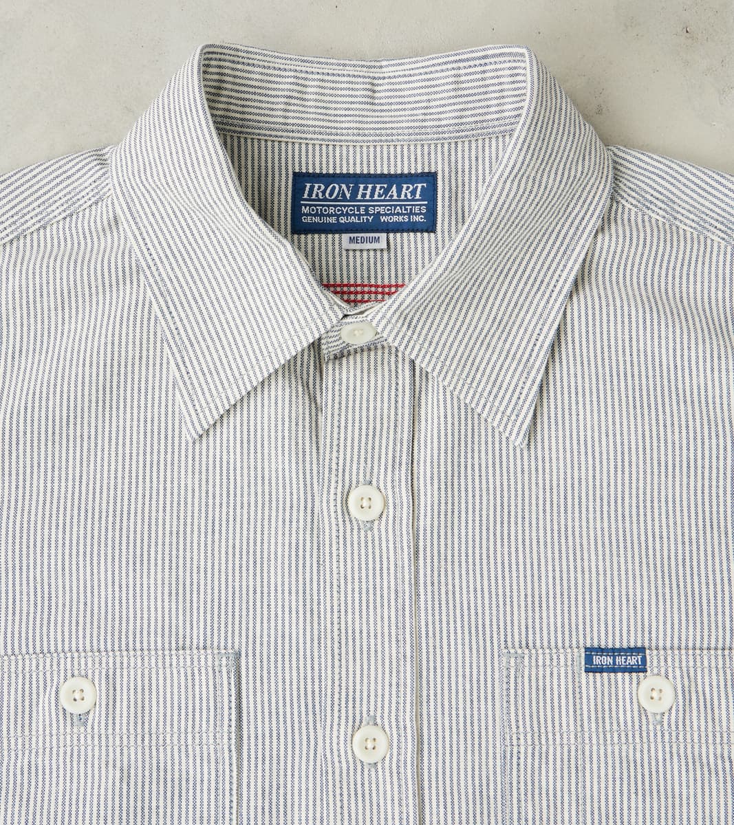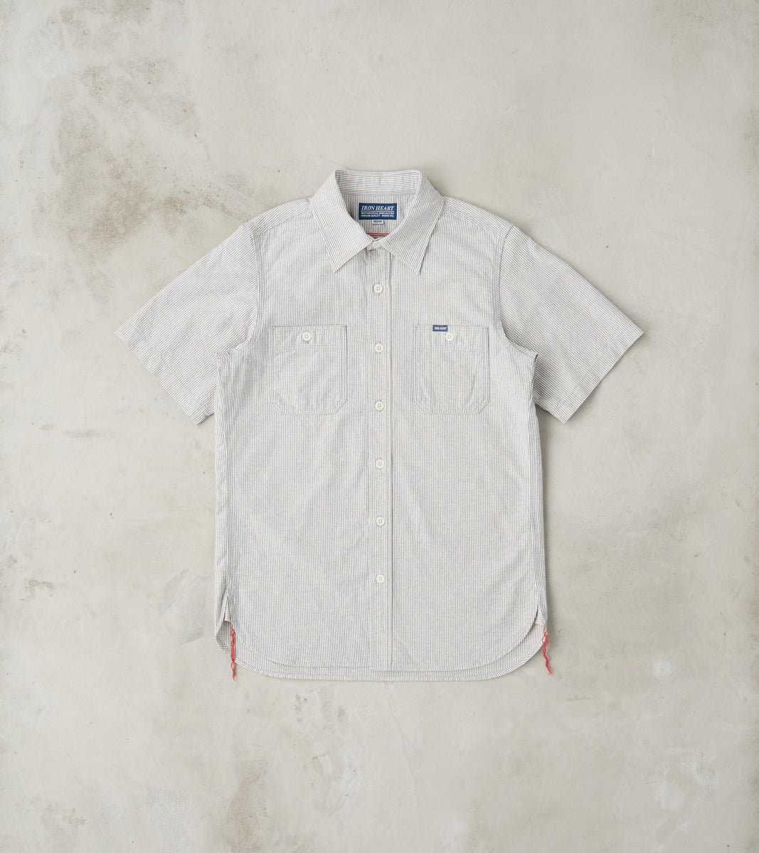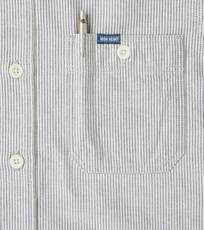 Iron Heart 420-HIC - Short Sleeved Work Shirt - 5oz Selvedge Oxford Cloth Hickory Stripe