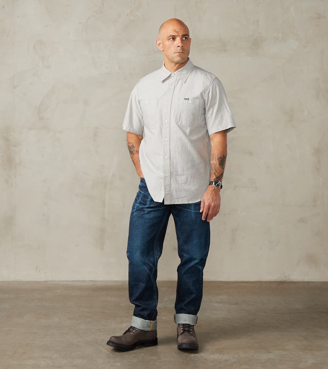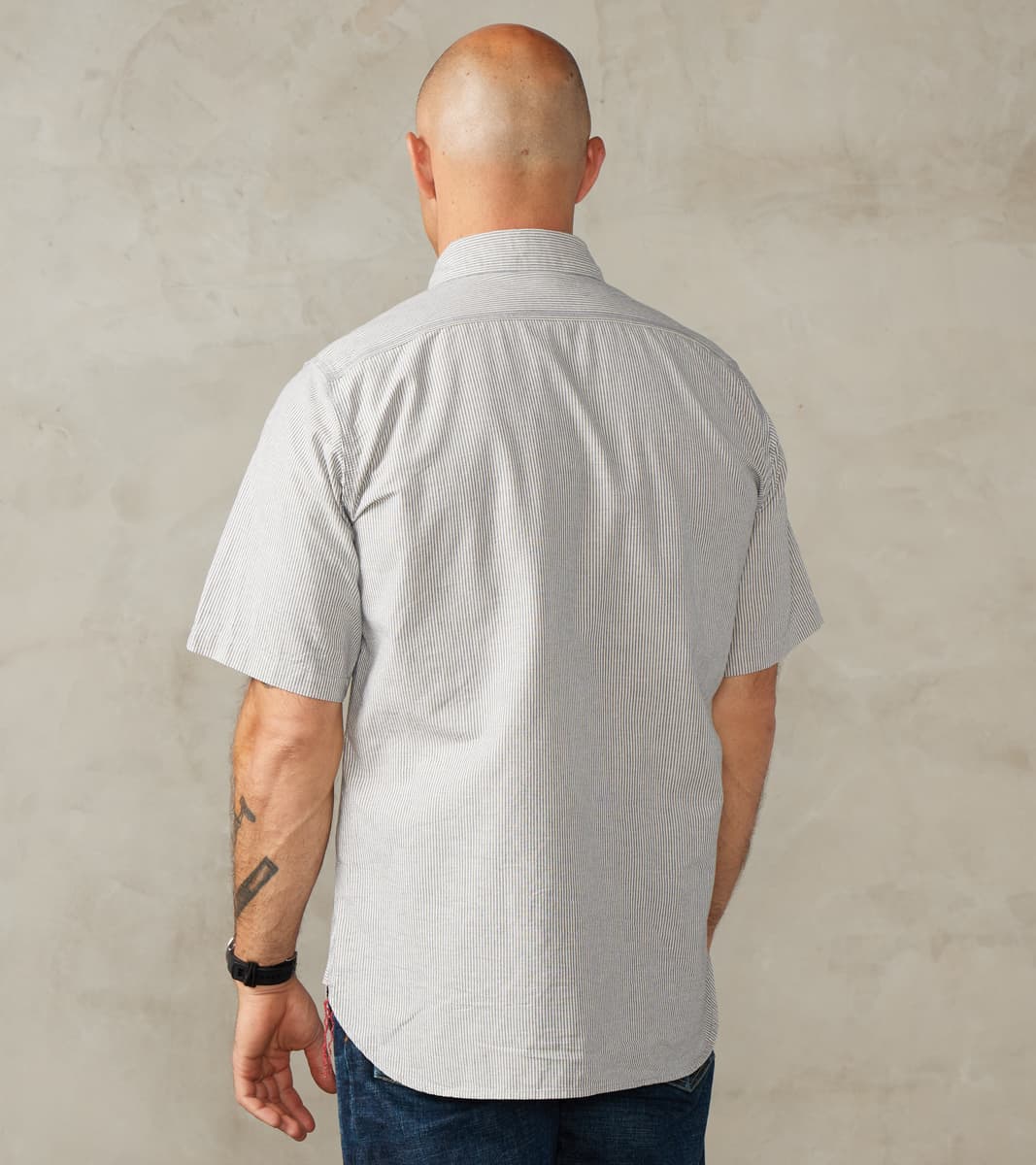 420-HIC - Short Sleeved Work Shirt - 5oz Selvedge Oxford Cloth Hickory Stripe
