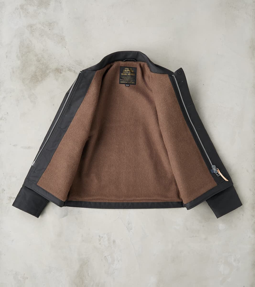 Iron Heart 45-BLK - A2 Deck Jacket - 14oz Black Oiled Whipcord
