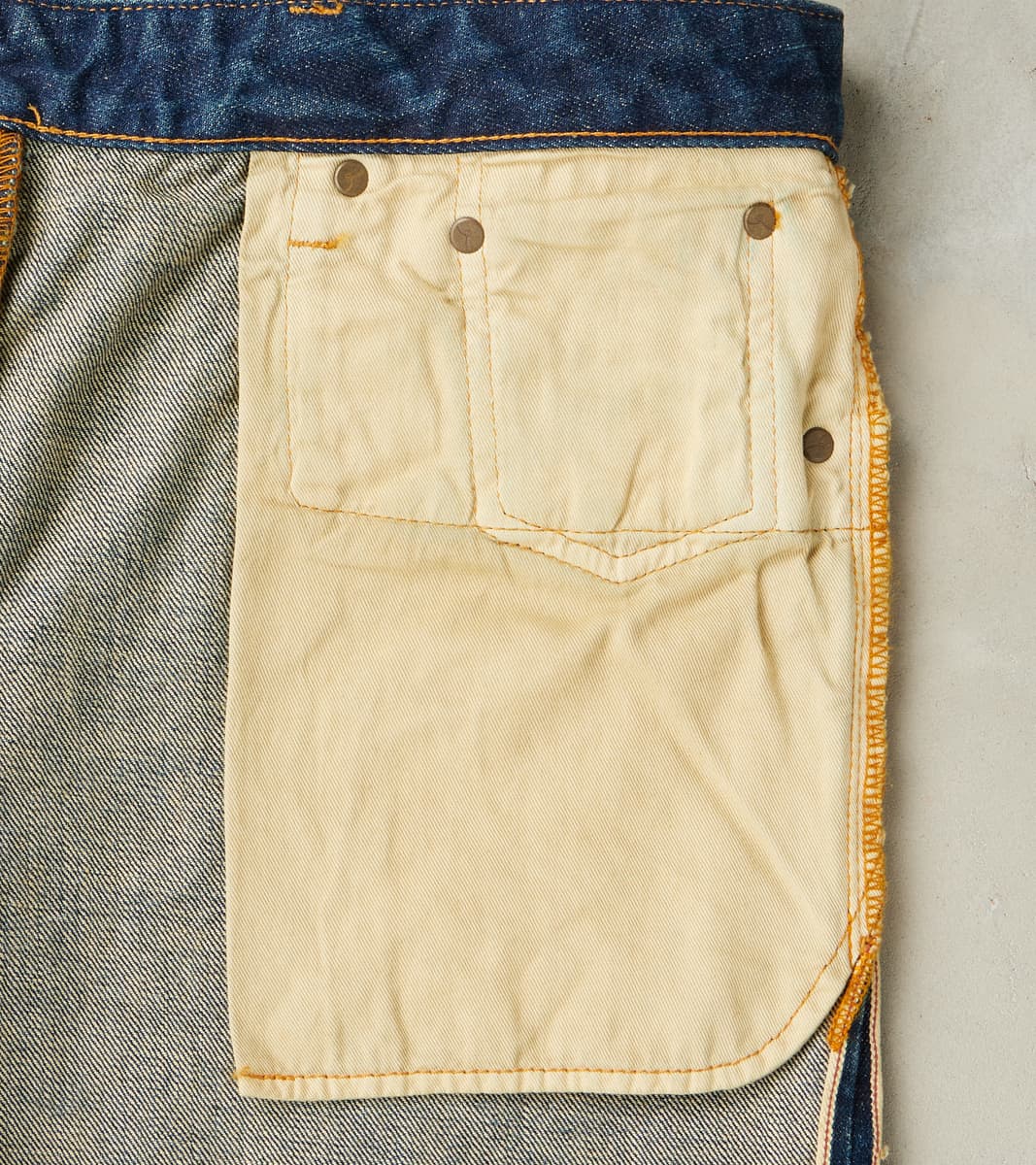 - Brass Zipper Fly w/ Aged Brass Top Button
