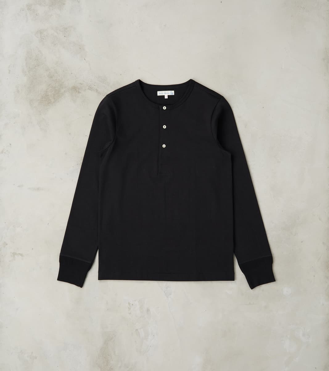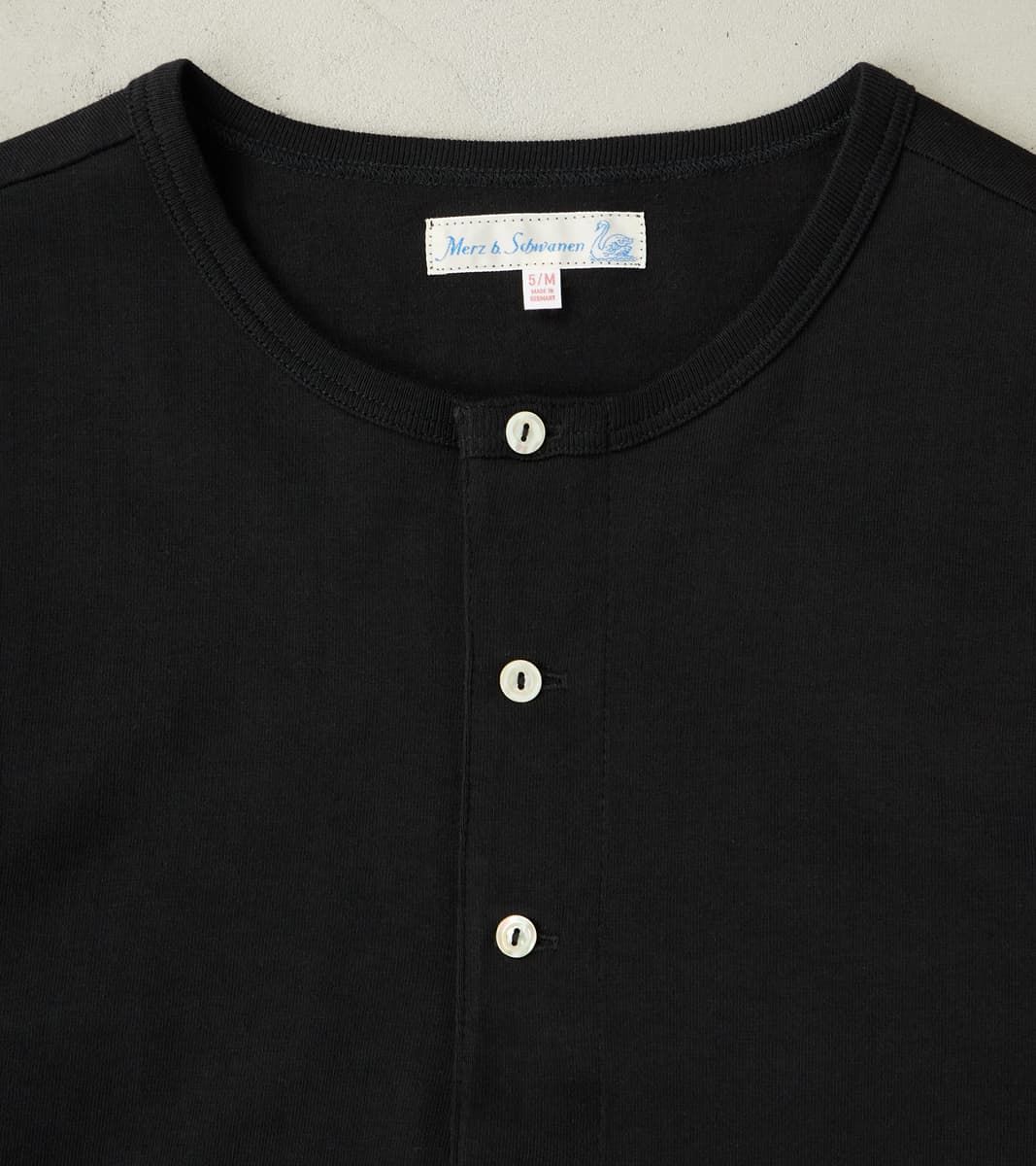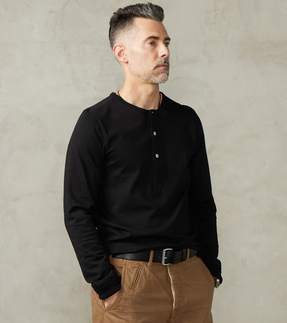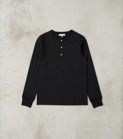 Merz b. Schwanen 206 Good Originals - 7.2oz Loopwheeled 2-Thread Henley - 99 Deep Black