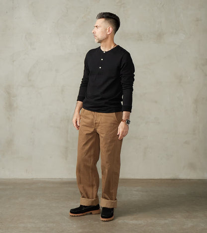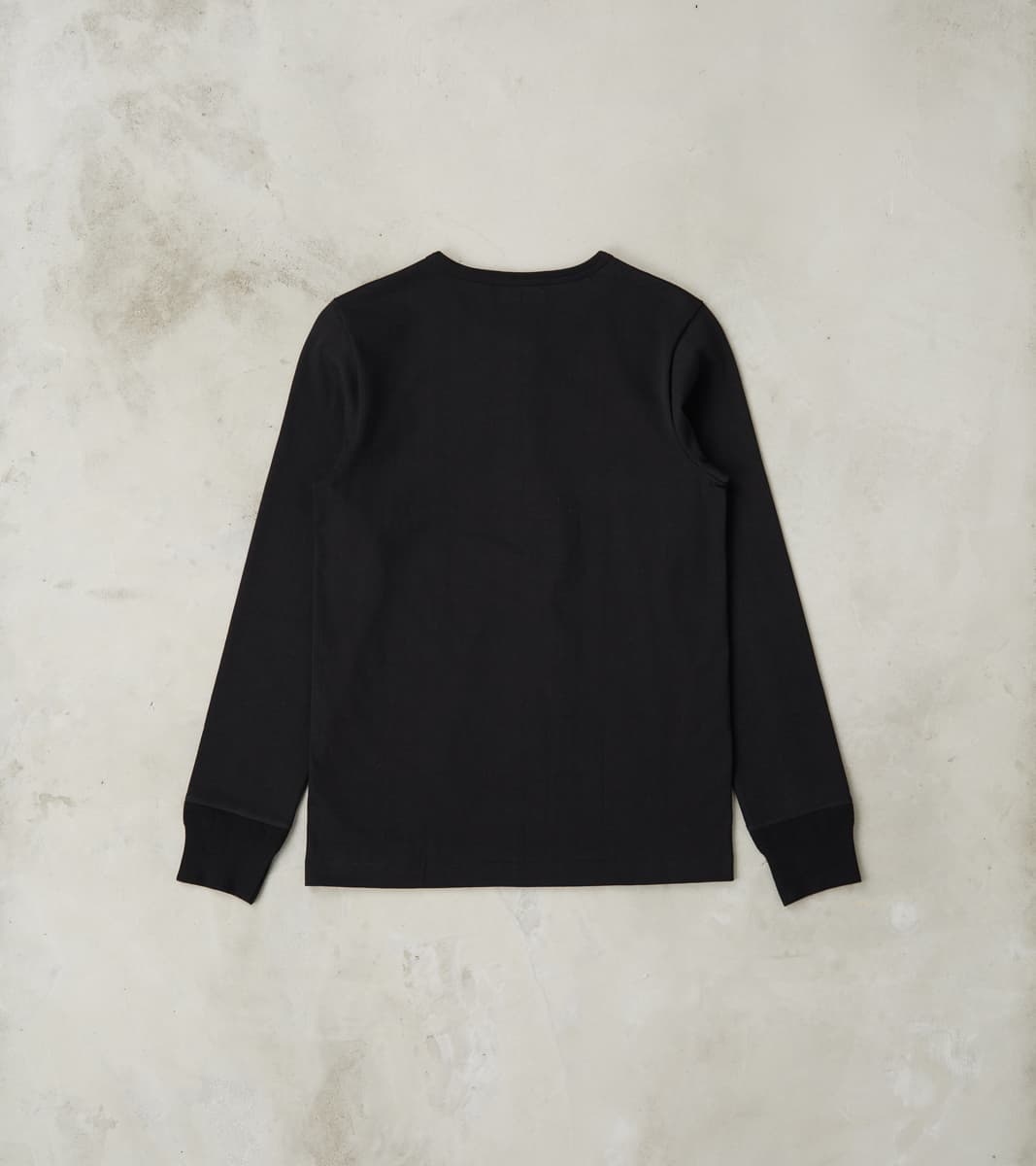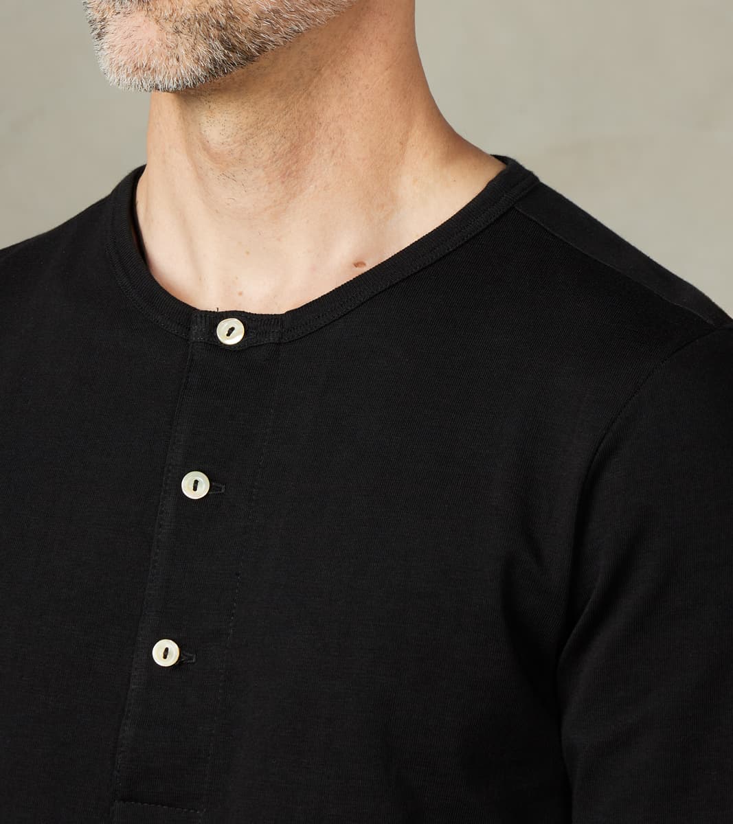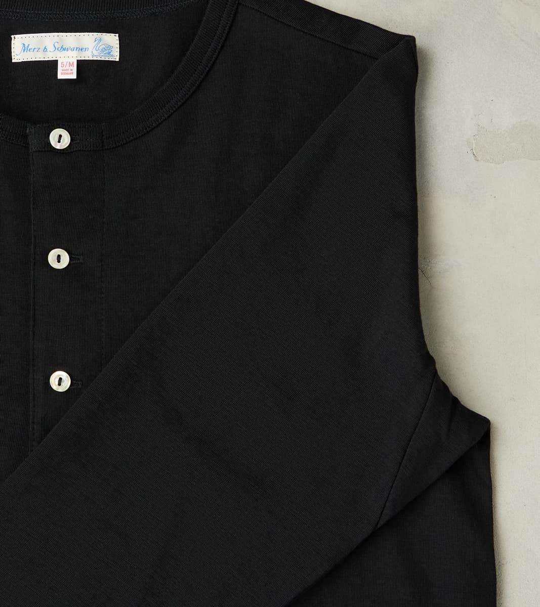 Merz b. Schwanen 206 Good Originals - 7.2oz Loopwheeled 2-Thread Henley - 99 Deep Black