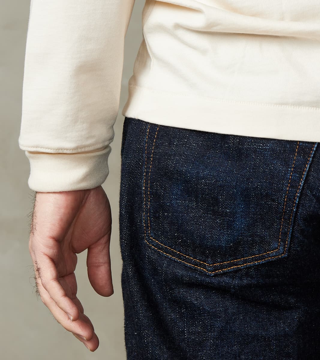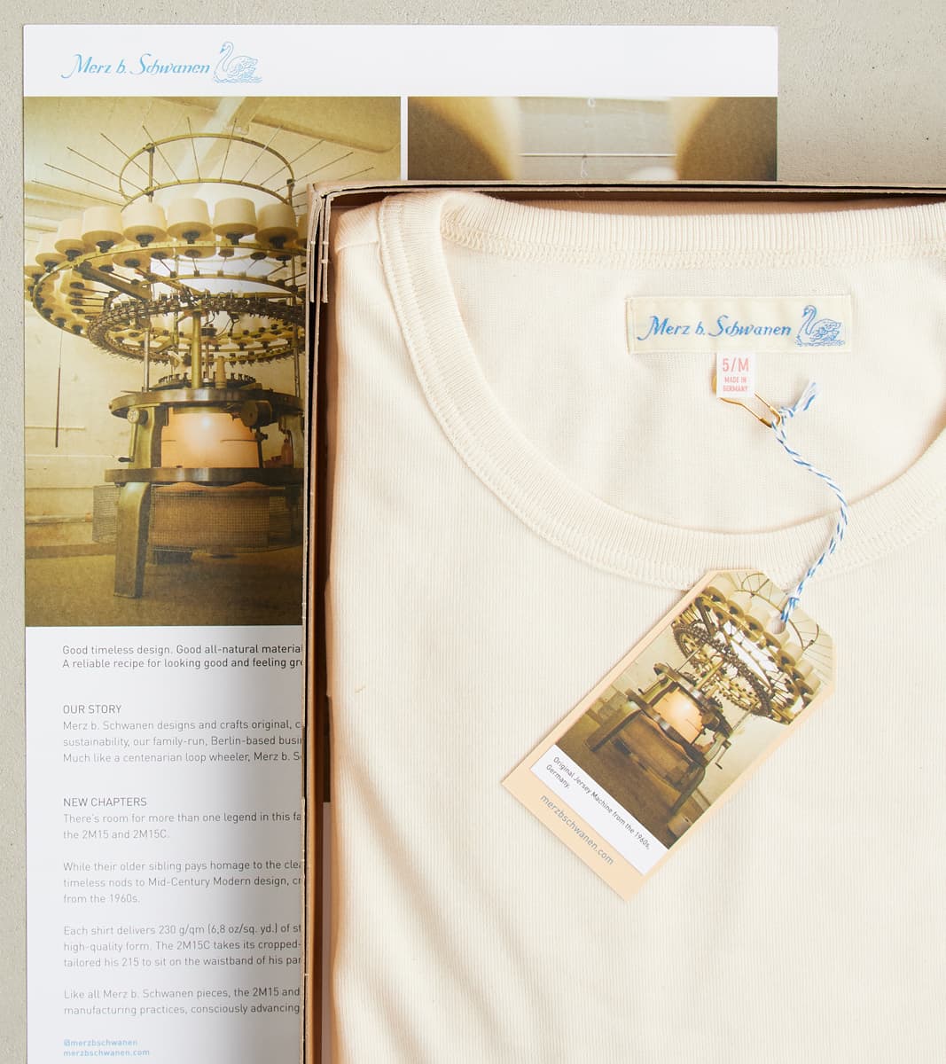 Merz b. Schwanen is on the small side of true to size, and is made with a loom-state unwashed fabric that will have about a half (.5) size shrinkage upon first wash. For a classic-fitting garment, consider taking the larger size in your range, and for a relaxed fit, go one (1) size up.