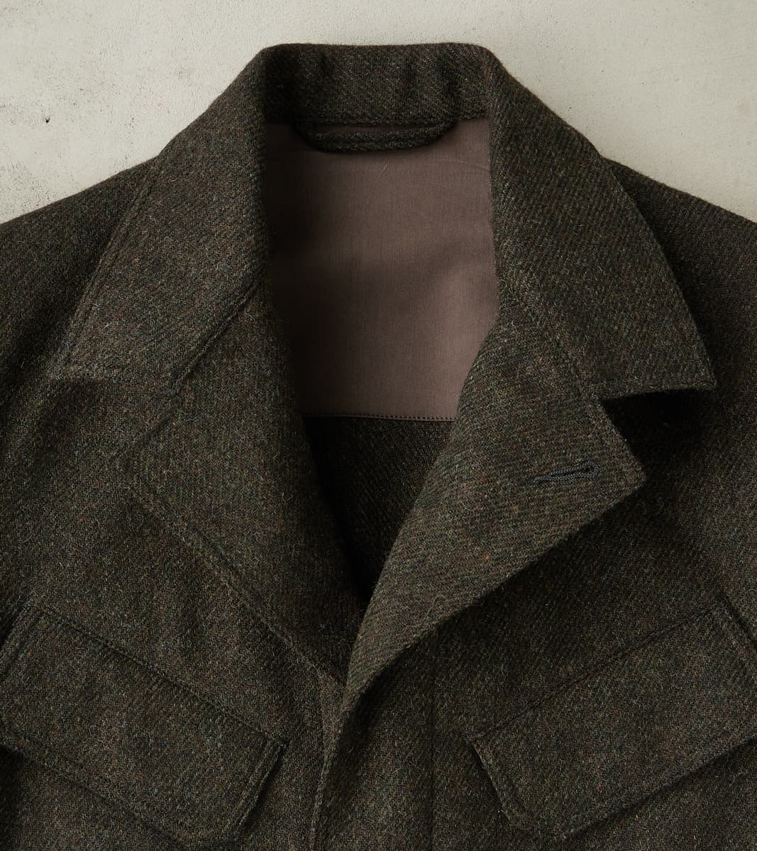French Army F-2 Fatigue Jacket - Fox Brothers® Dark Olive Tweed Twill
