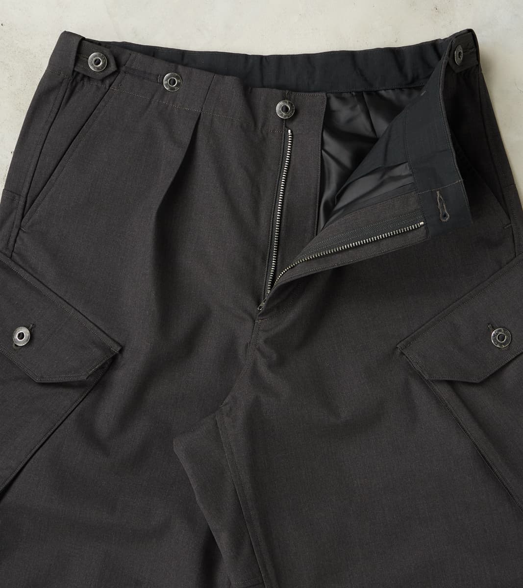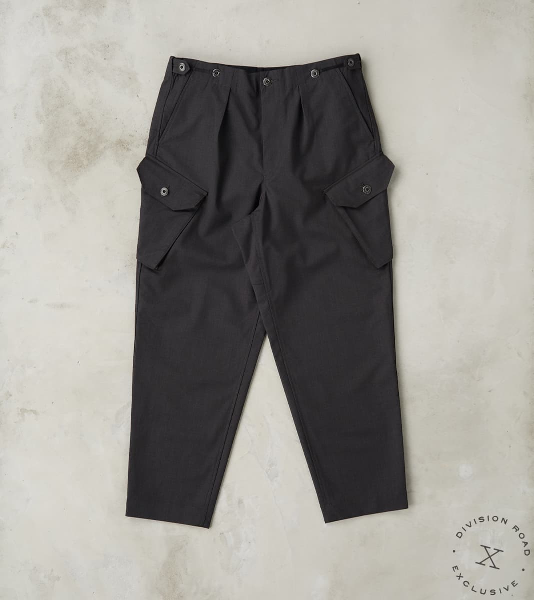 MotivMfg Swiss Army Cargo Trousers - Anthracite Optim® Wool Gabardine