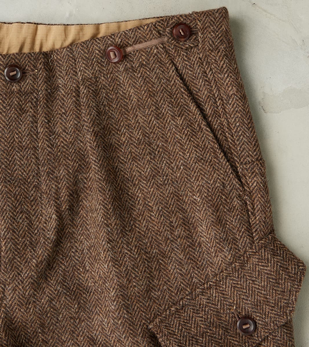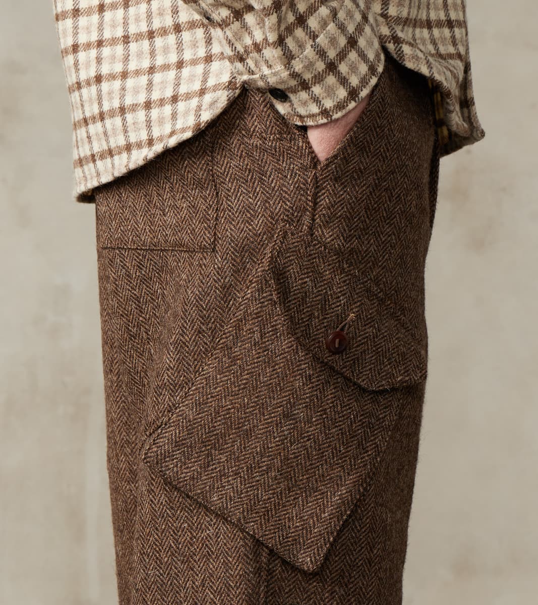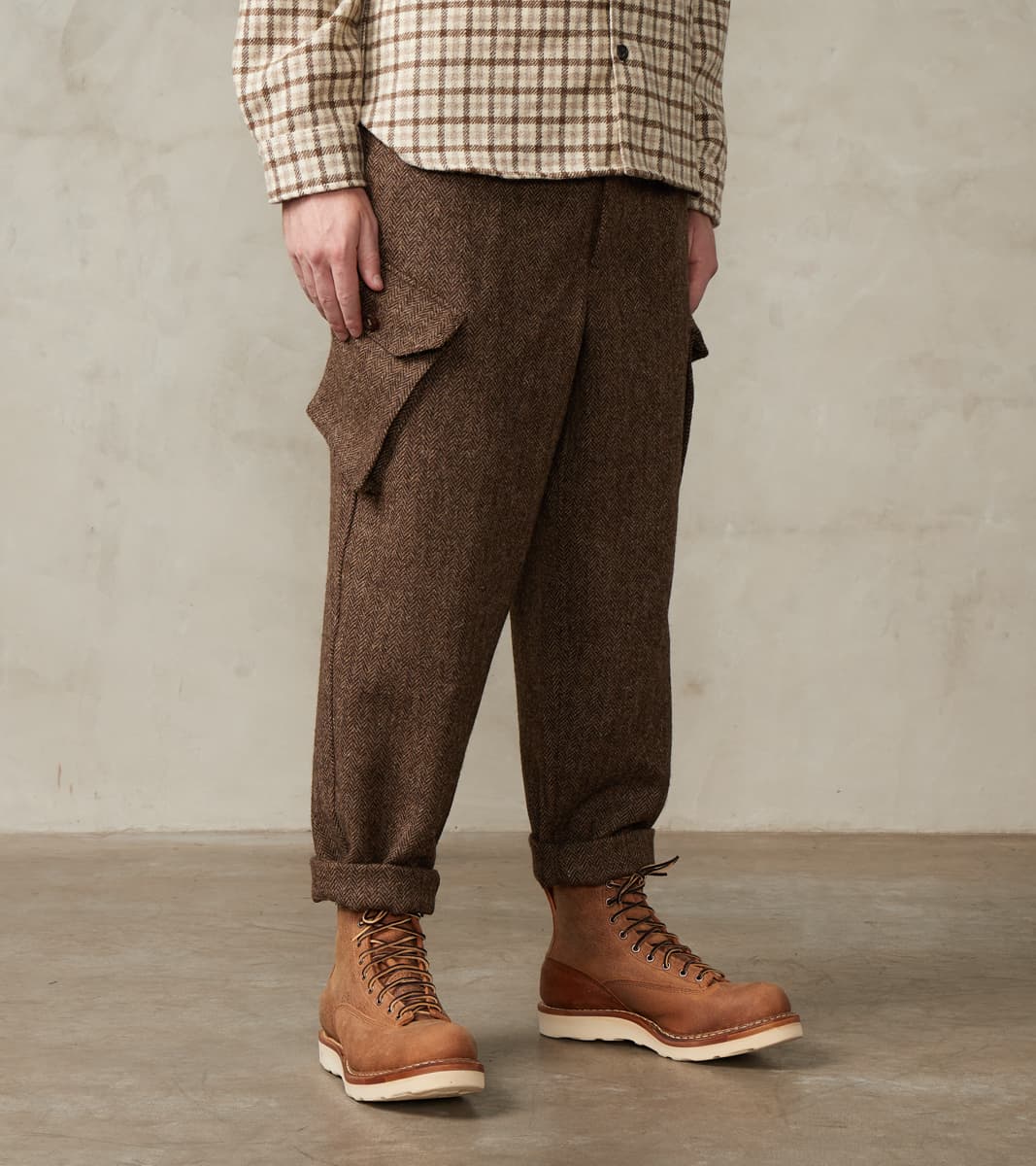 Swiss Army Cargo Trousers - Fox Brothers® Dark Walnut Brown Tweed Twill