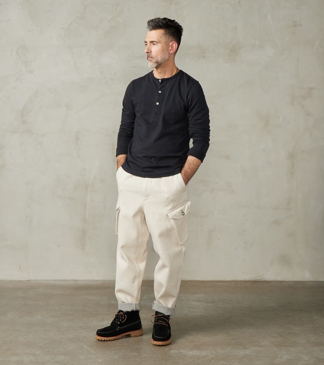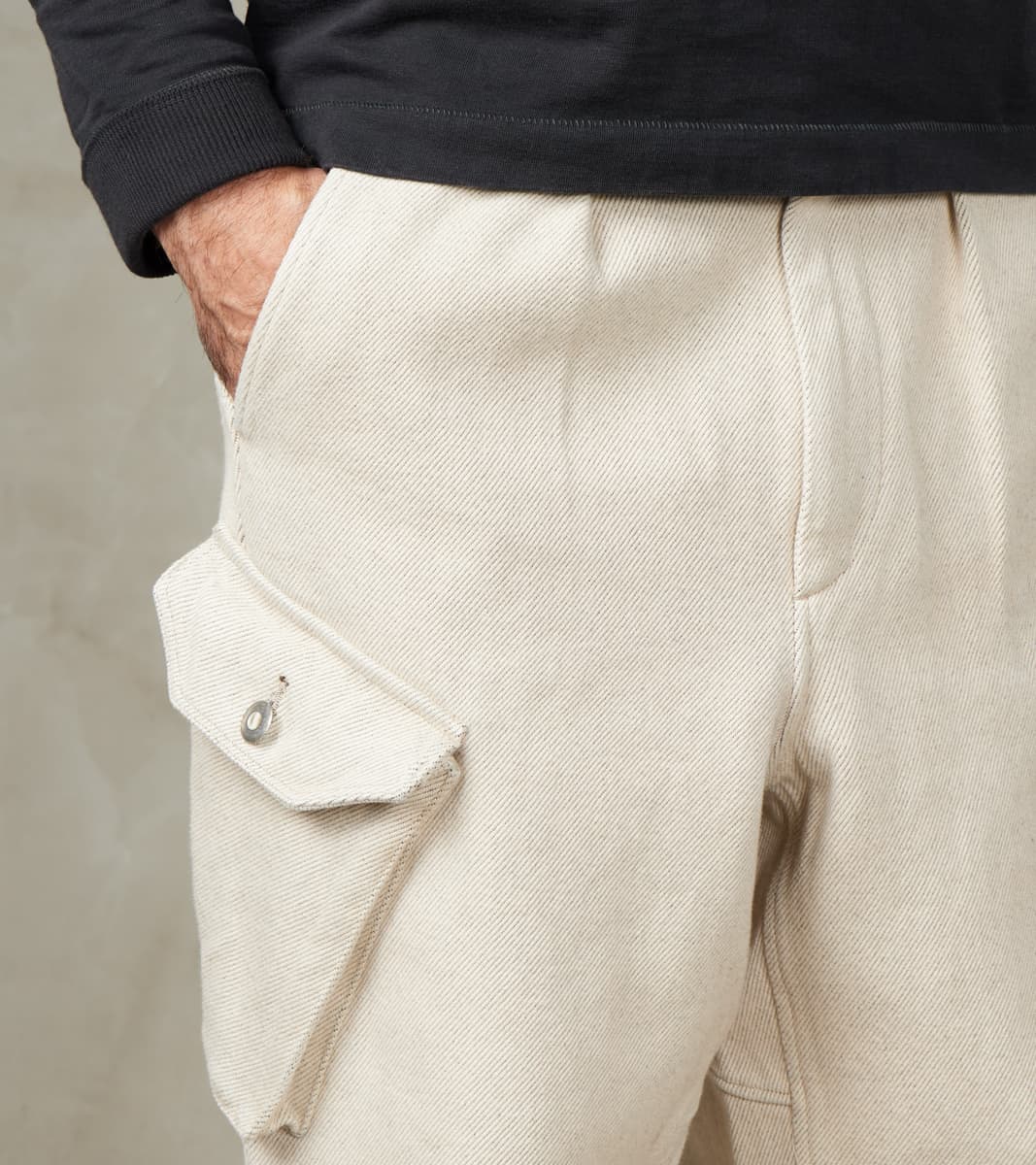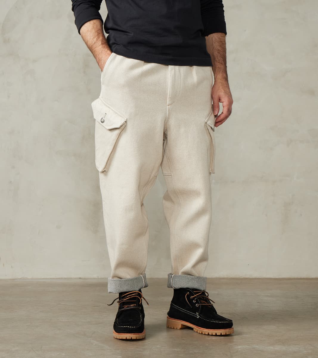 MotivMfg Swiss Army Cargo Trousers - Natural Tailors Selvedge Denim