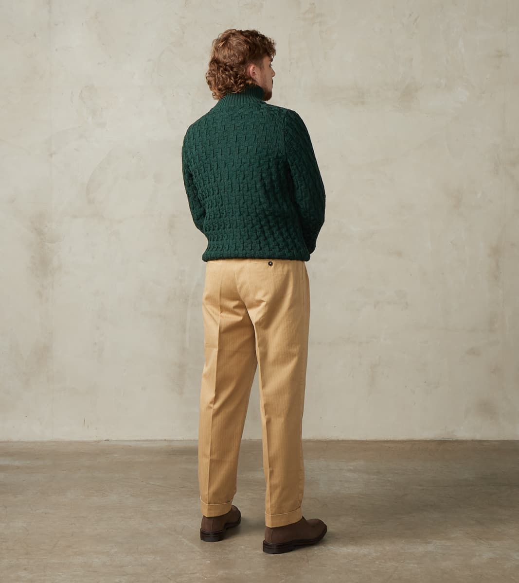 Seattle Pleated Trouser - Camel Herringbone Twill