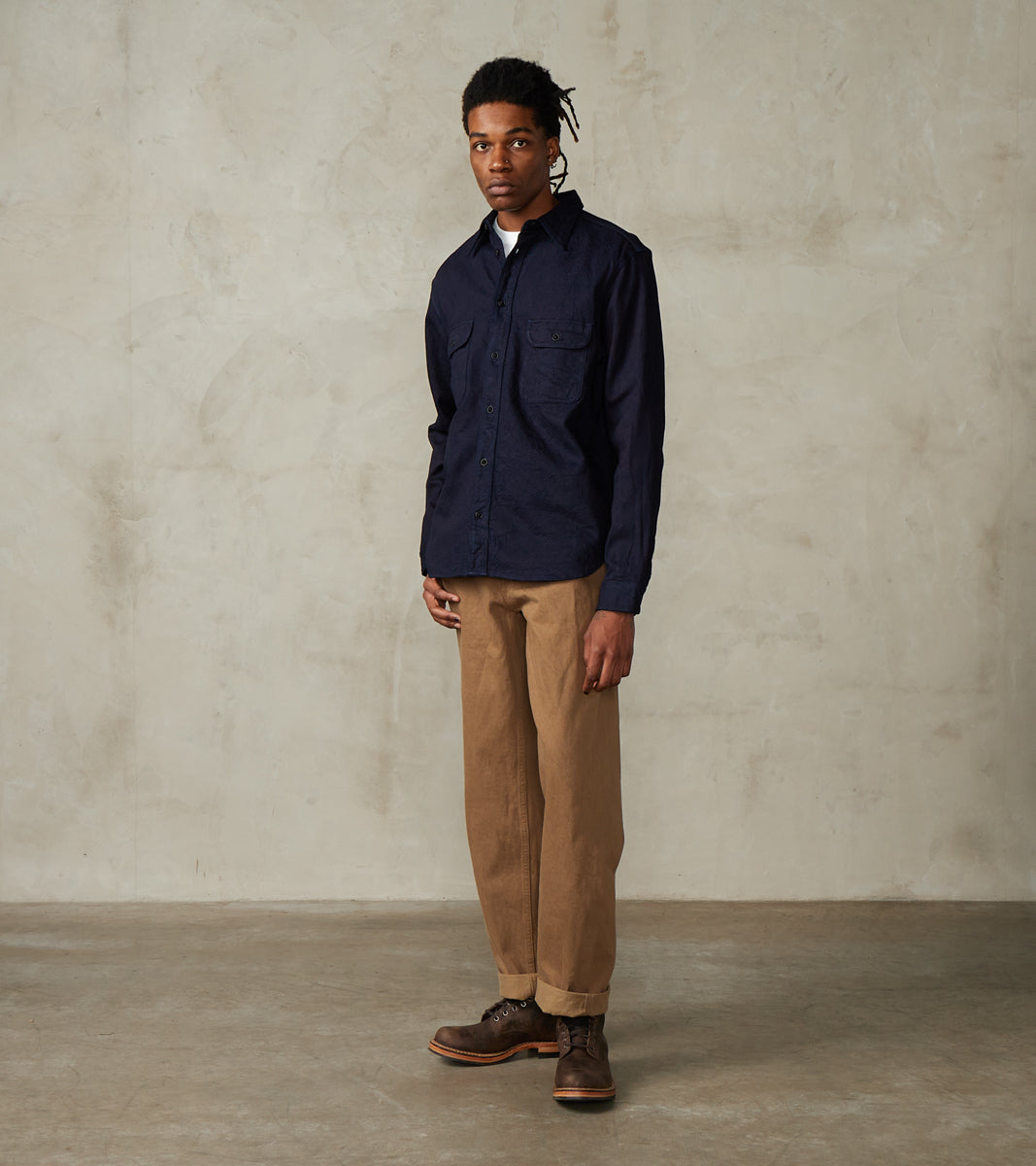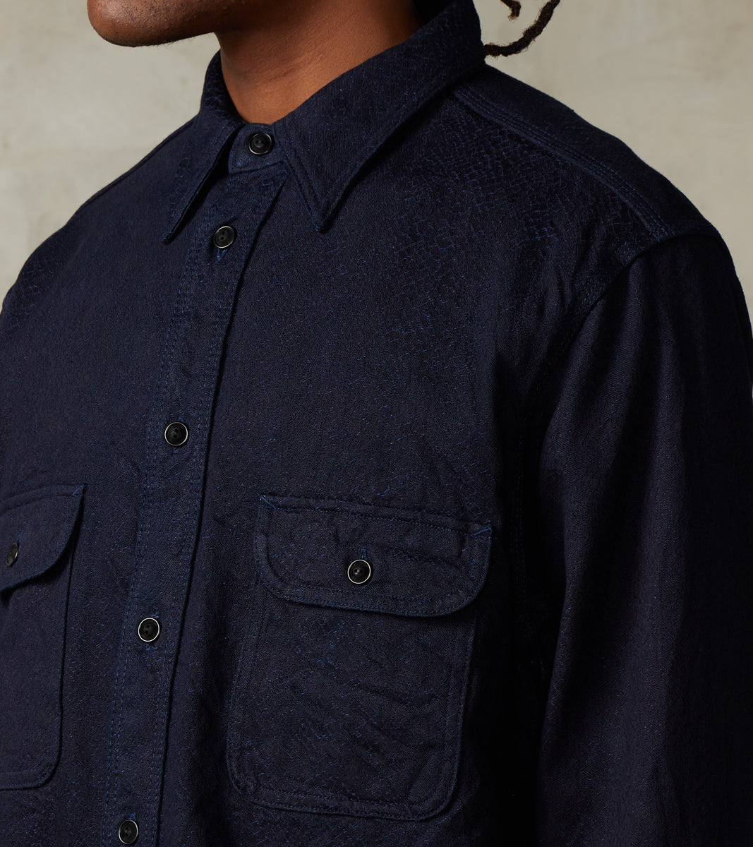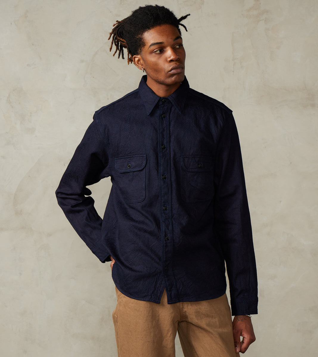 Samurai SSS25-01W Indigo Dyed Snake Jacquard Work Shirt