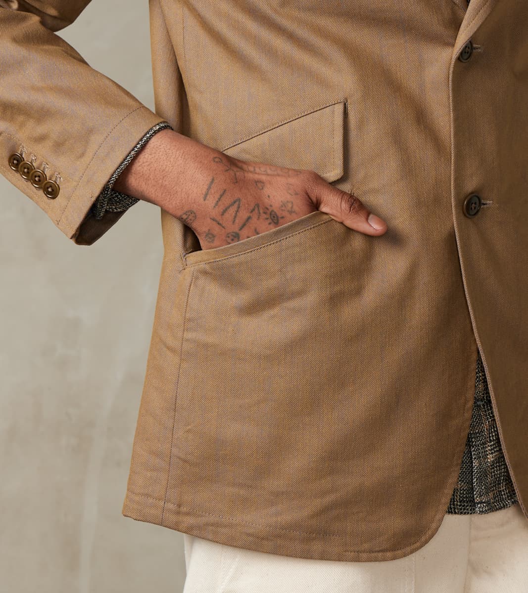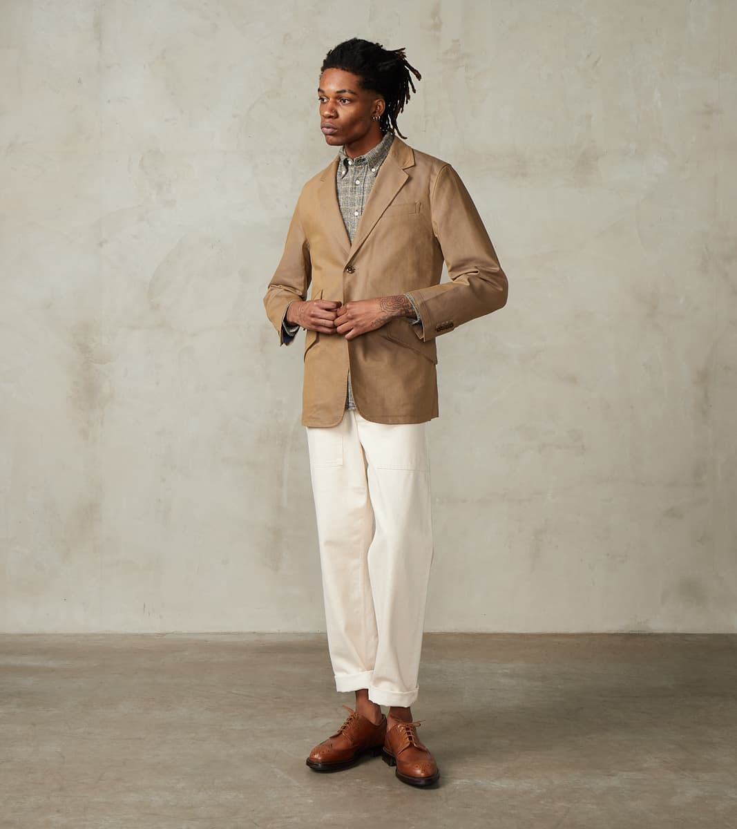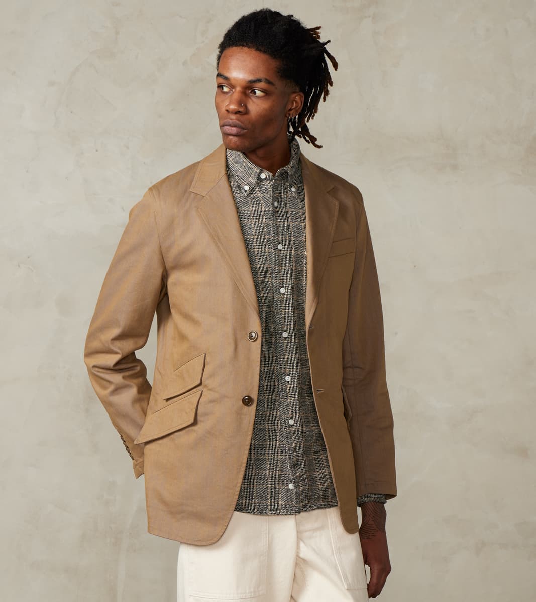 ts(s) Single Breasted 2-Button Jacket - Cotton Recycled Polyester Twill - Khaki